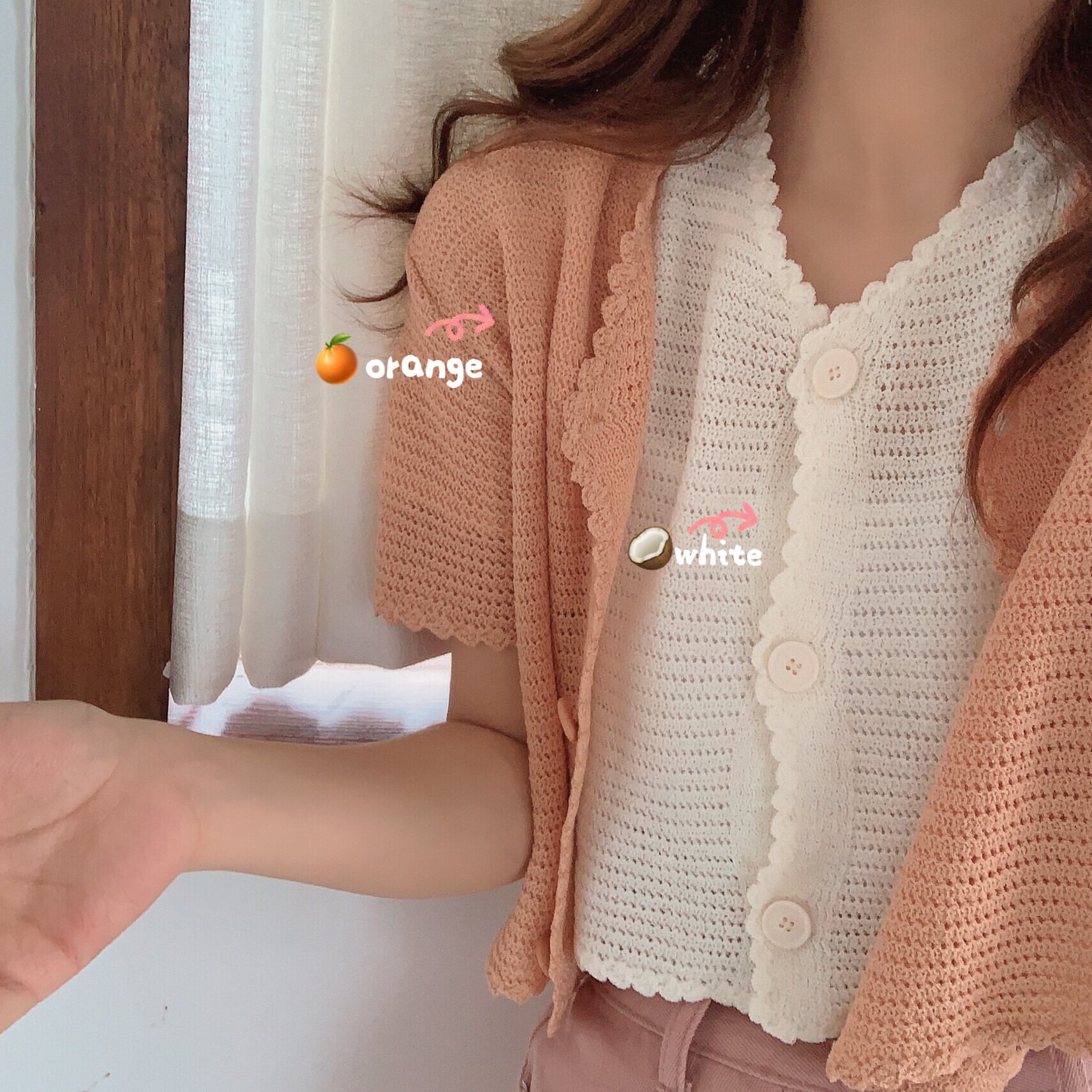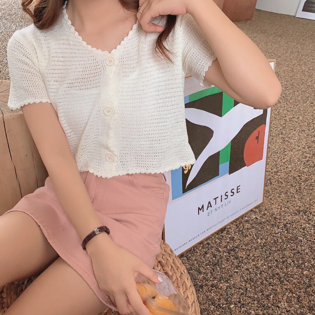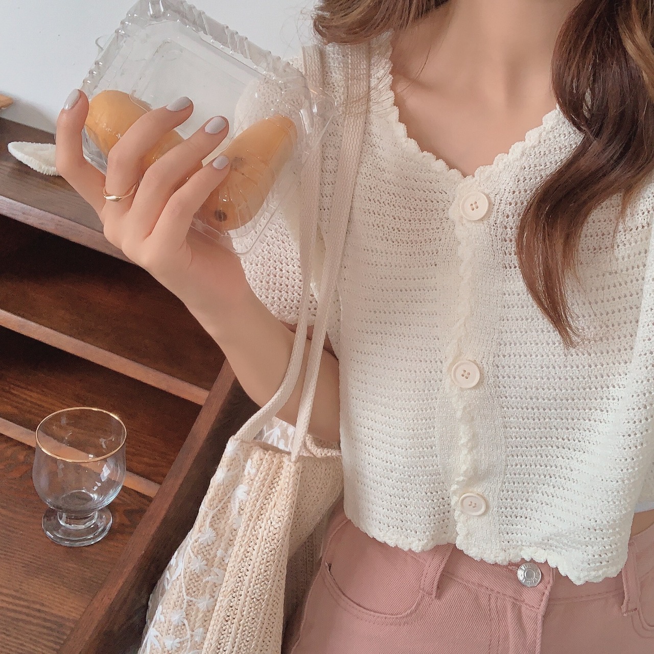 ホワイトショートニットカーディガン薄手コート 夏服シャツ 夏物 シルク Marchs81016145952