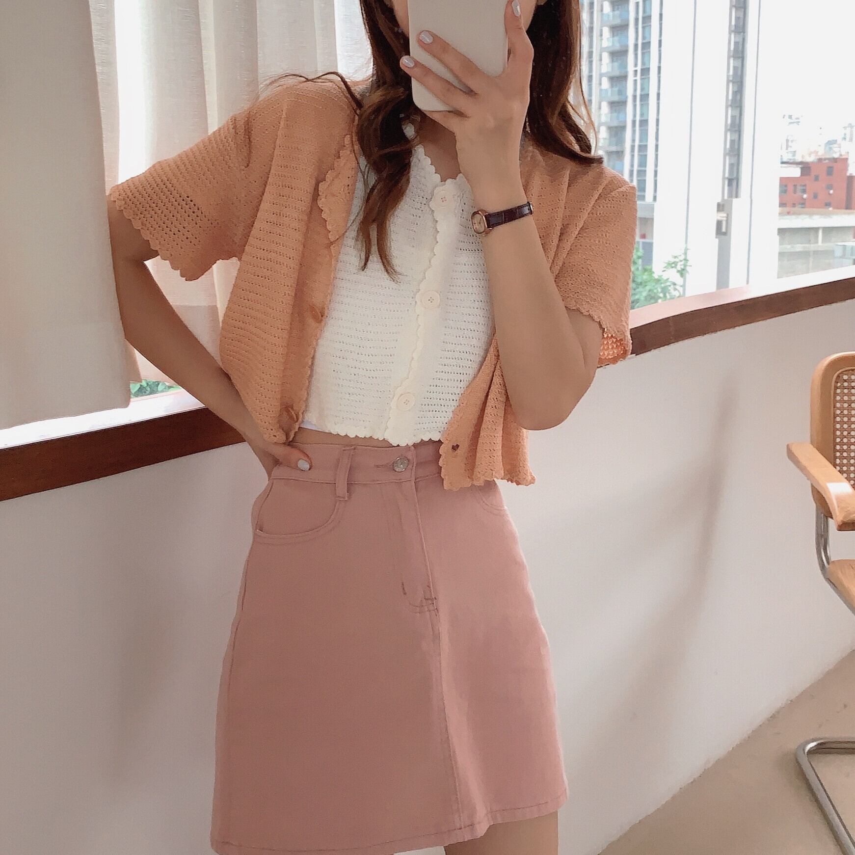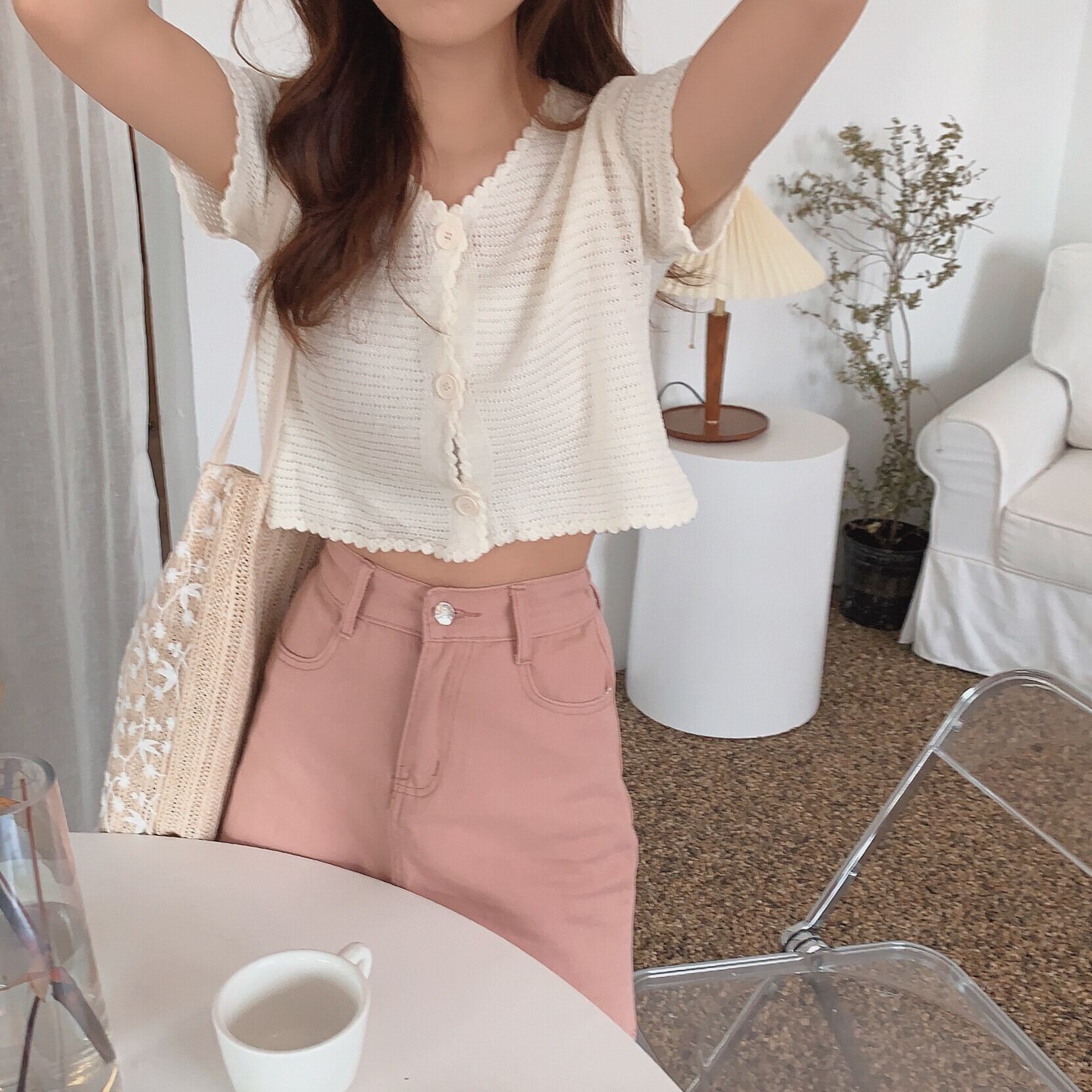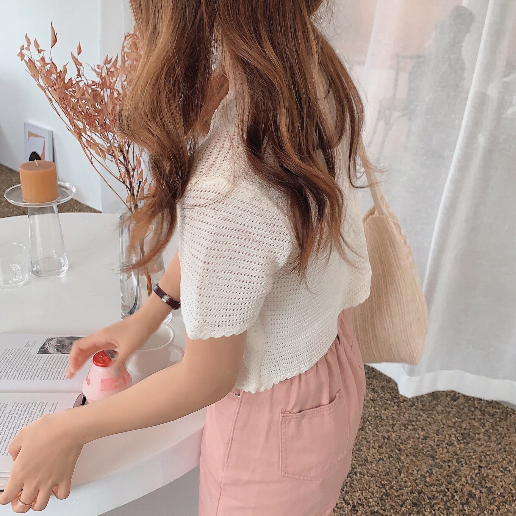 ホワイトショートニットカーディガン薄手コート 夏服シャツ 夏物 シルク Marchs81016145952