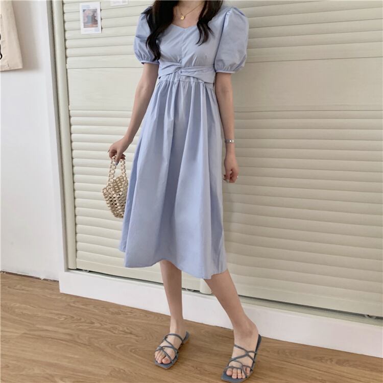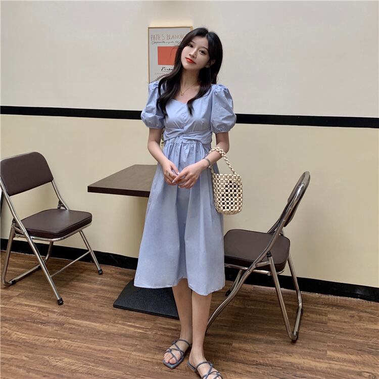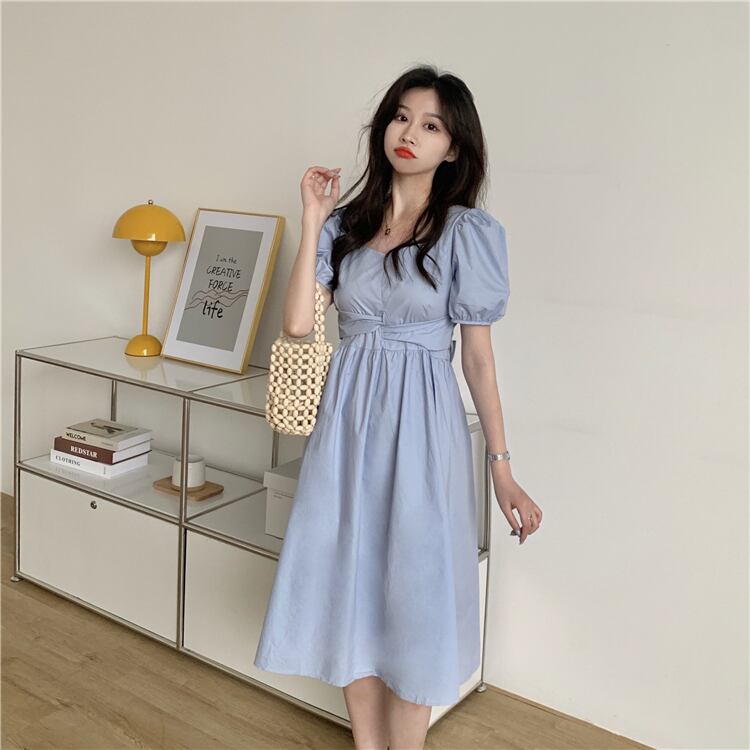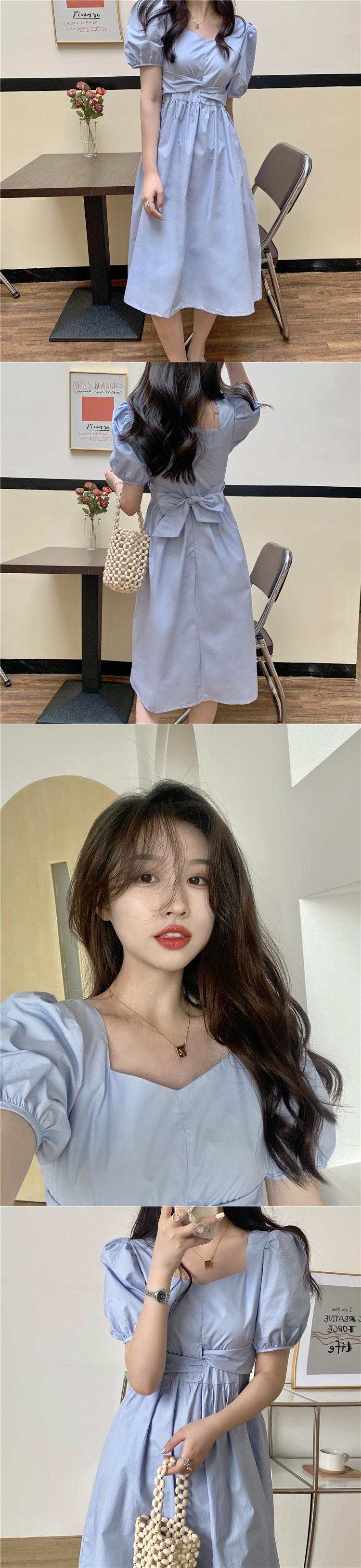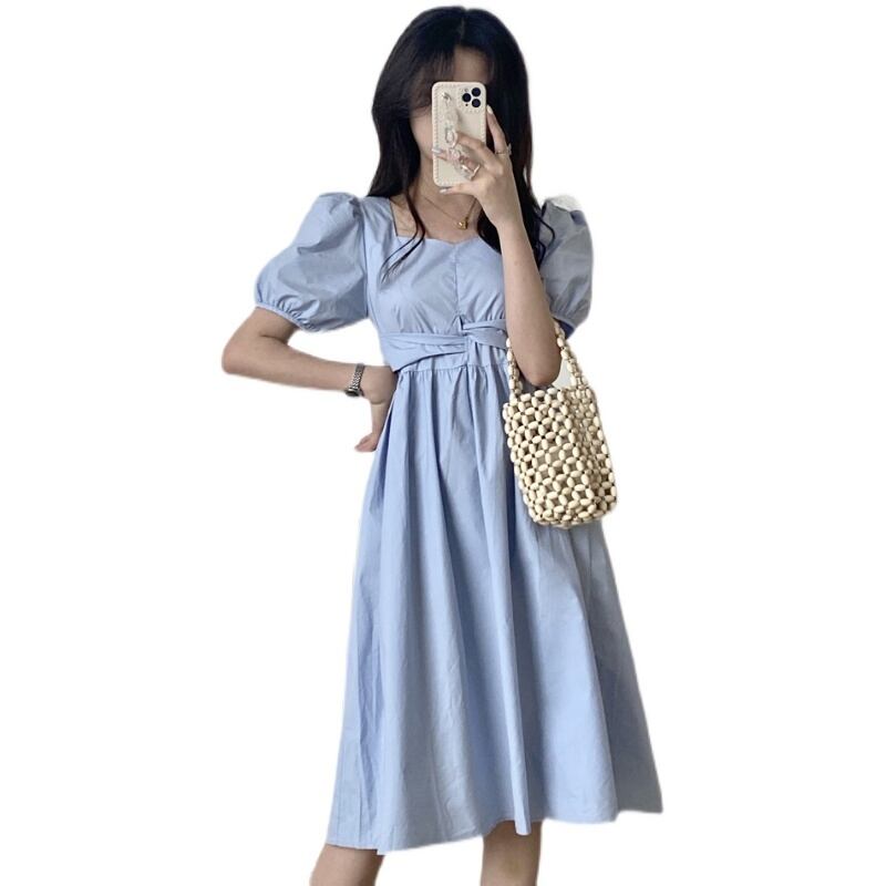 スリーブカラー夏服薄手スカート 大人ガーリー スウィート キュート カジュアル 夏物 フラワーデザイン スクウェア ワンピース ウエスト ミドル丈 Marchs31365615922
