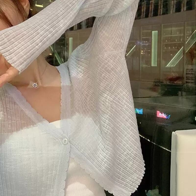 ショート夏服スカート ニットカーディガン薄手コート ブラウス 夏物 シルク Marchs84001504181