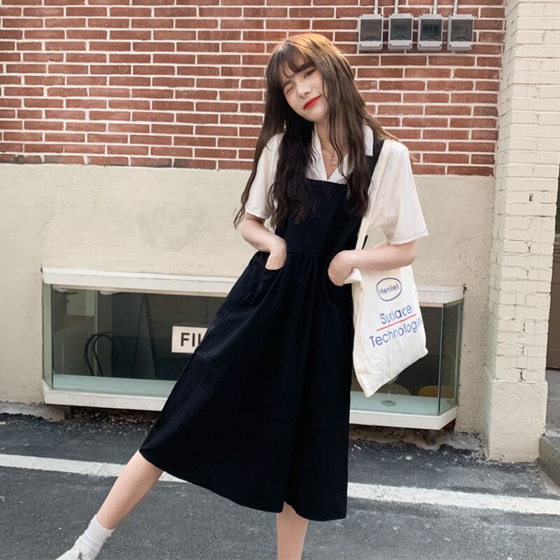 シャツ スカート レディース夏服スタイルロングブラックワンピース 夏物 Marchs83797372601