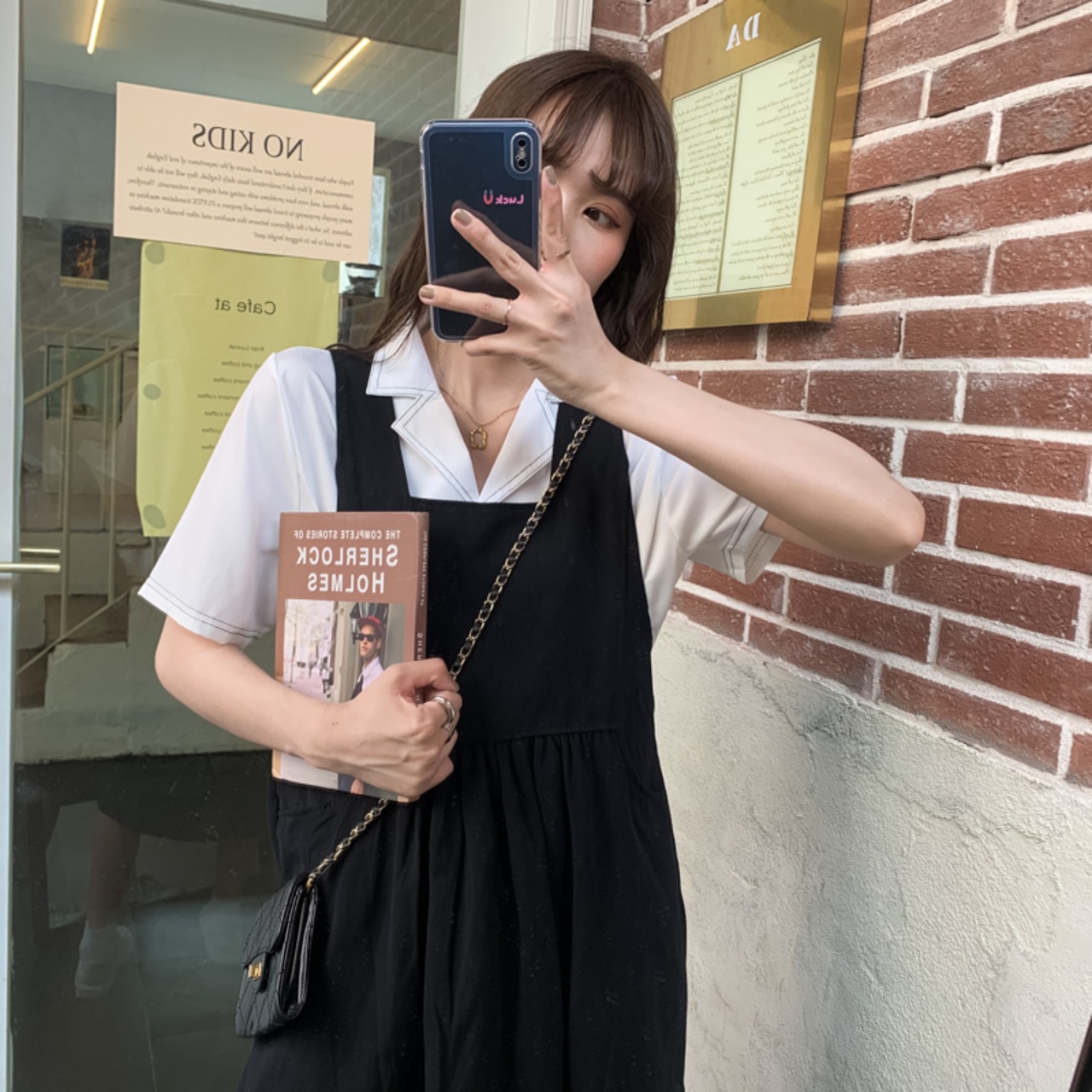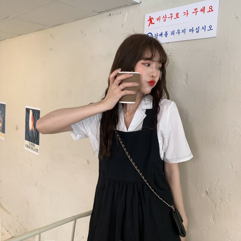 色:黒いドレス,白のシャツ