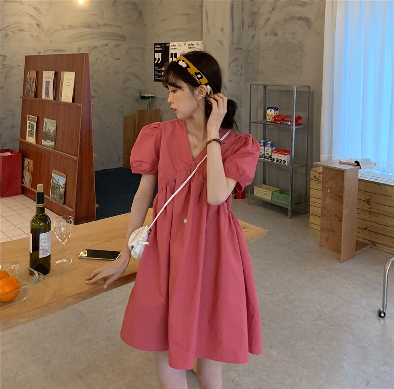 スカート レッドレディース夏服スリーブVネックワンピース 夏物 フラワーデザイン Marchs53689193533