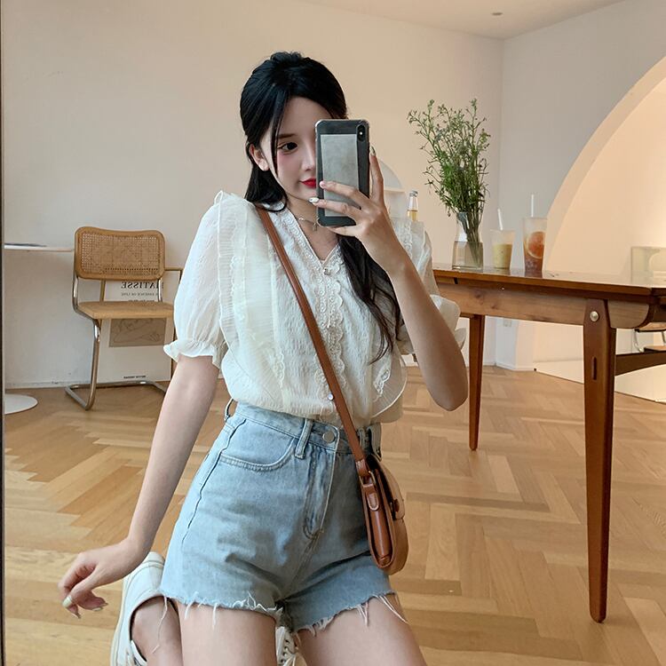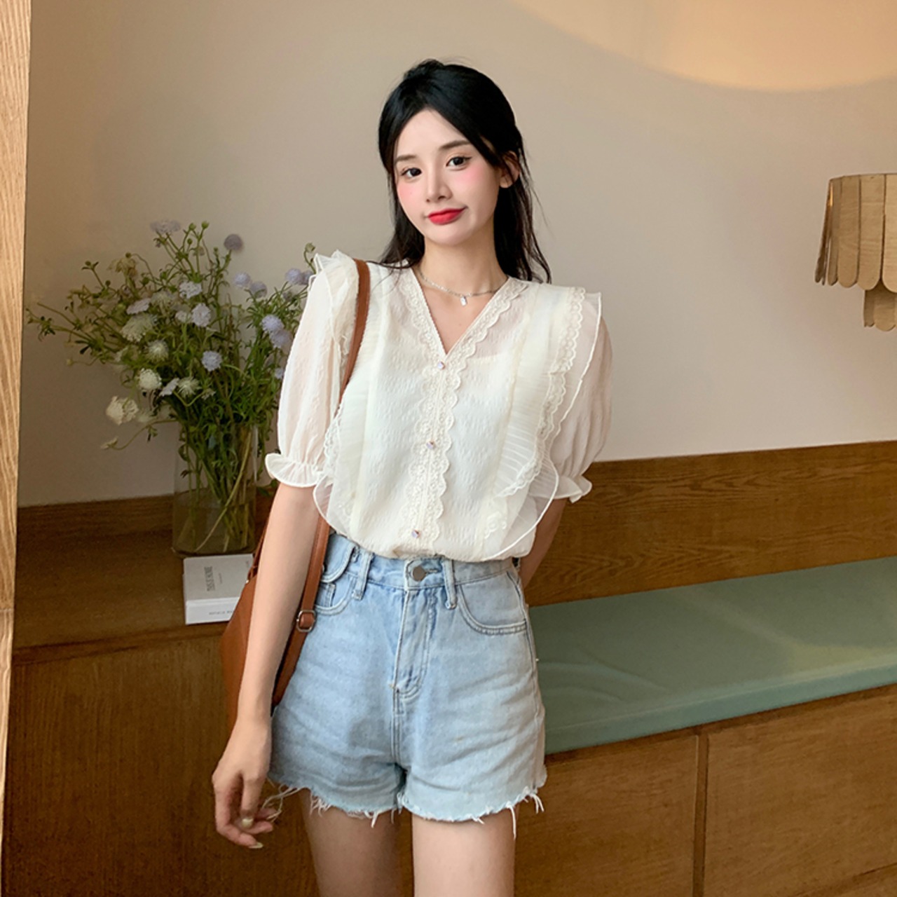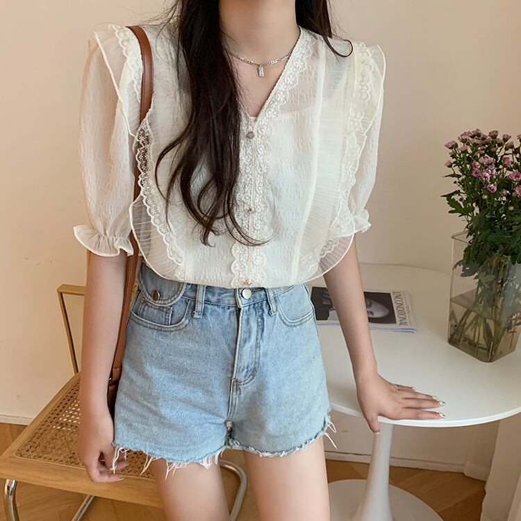 夏服スタンダードワンピースレディースレースシャツ スカート レトロ 夏物 Marchs74486686607