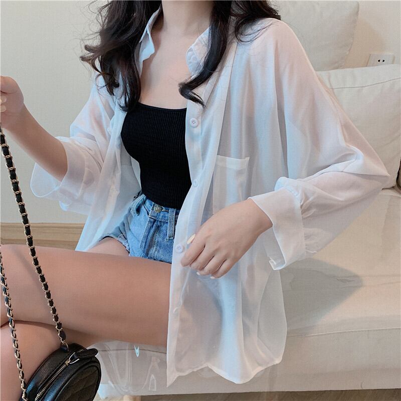 薄手レディーススプリング夏服韓国ファッションルーズシフォンカーディガンコート シャツ 春物 夏物 スタイル Marchs76566781167