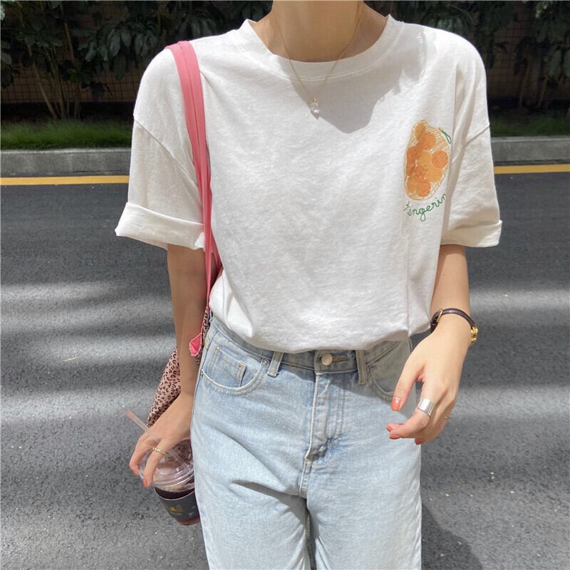 ホワイトTシャツレディース夏服韓国ファッションルーズプリントトップス 夏物 スタイル Marchs74127734278