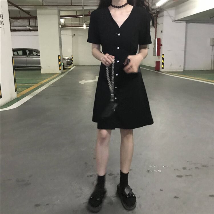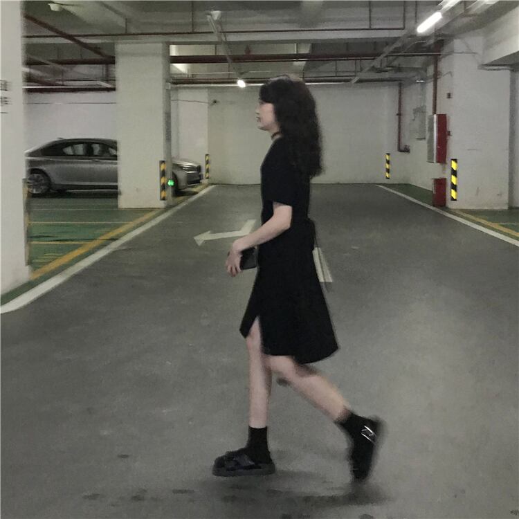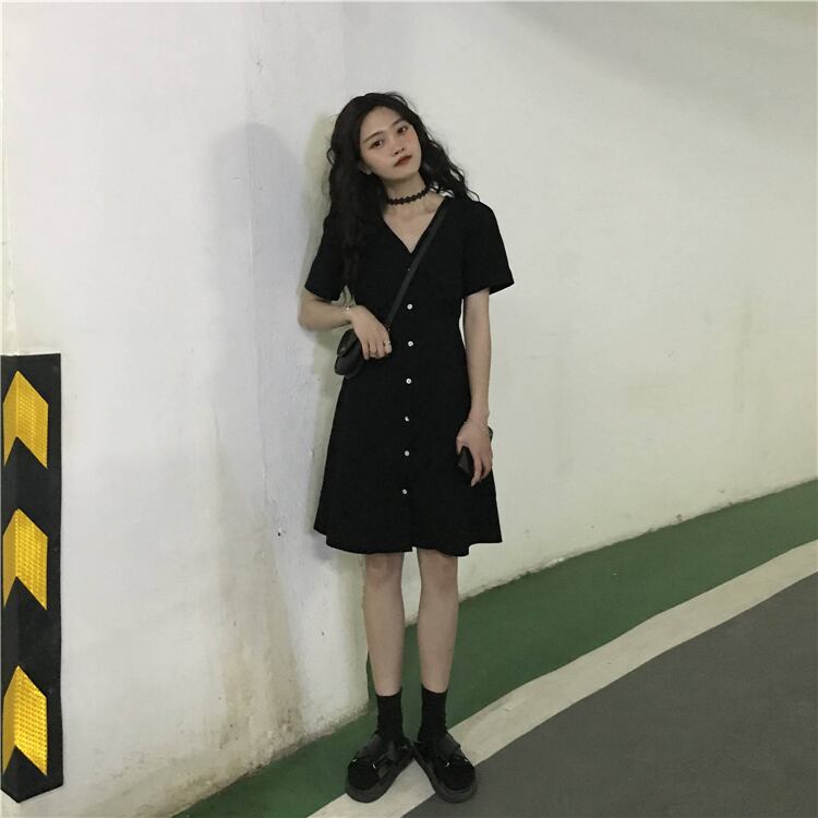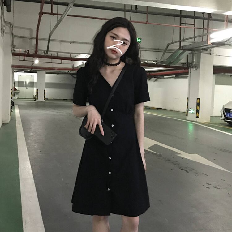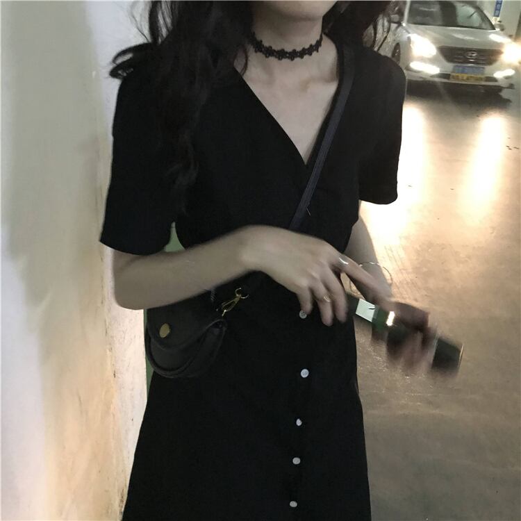 韓国ファッションウェストVネックスリムブラックスタイルワンピース夏服 レース 夏物 レースアップ ウエスト Marchs36236521855