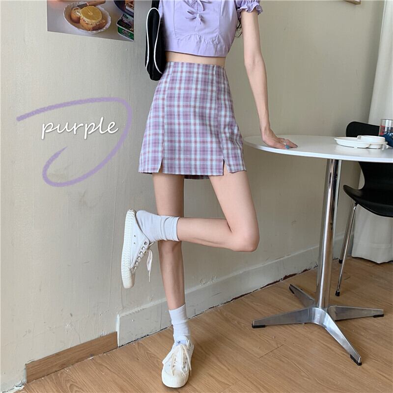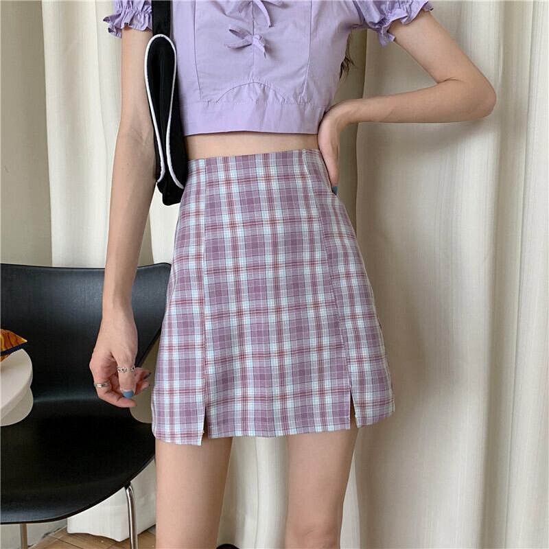 格子柄スカート スプリングハイウェストウェストAラインショート 春物 ウエスト Marchs86940954568