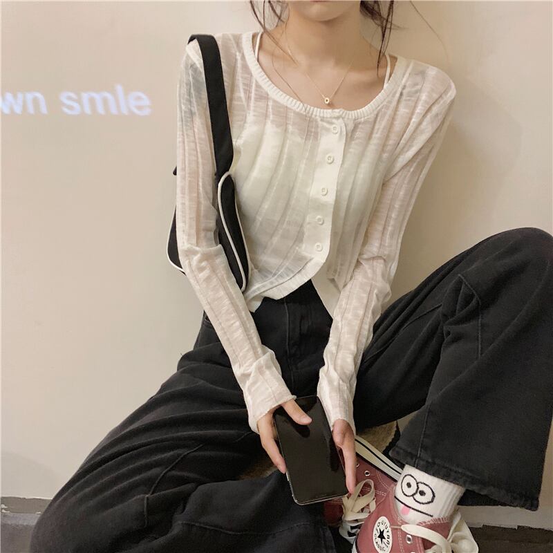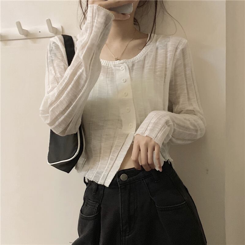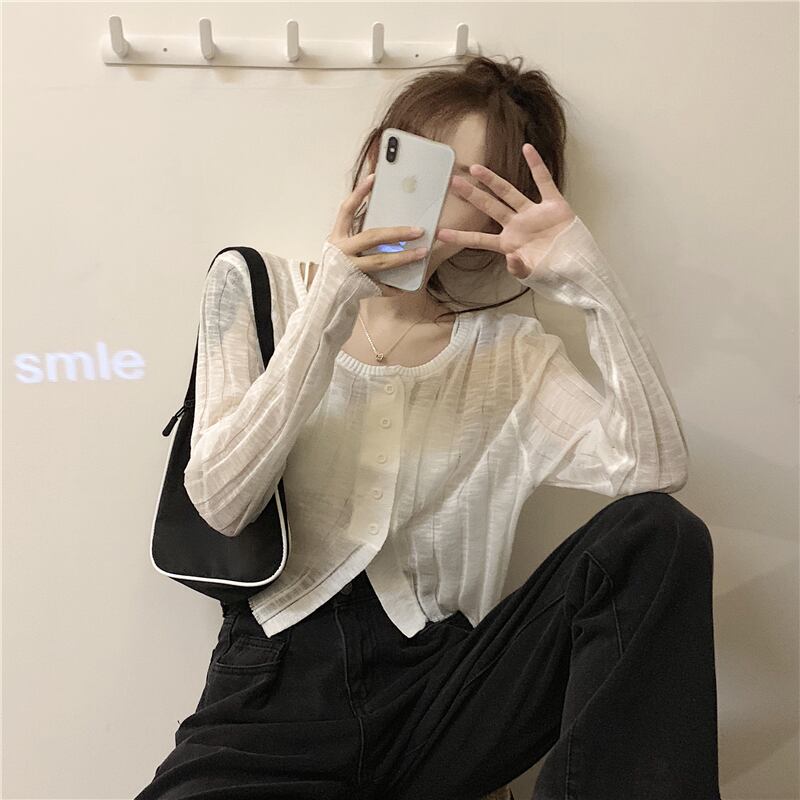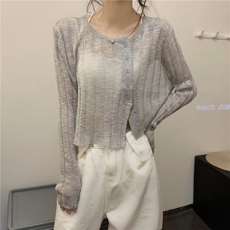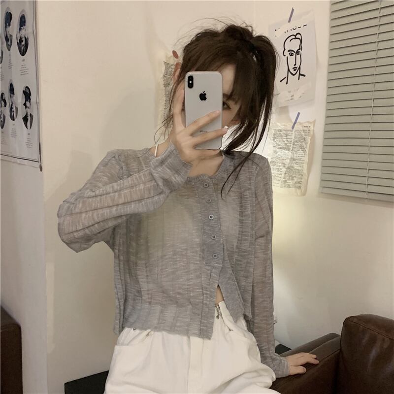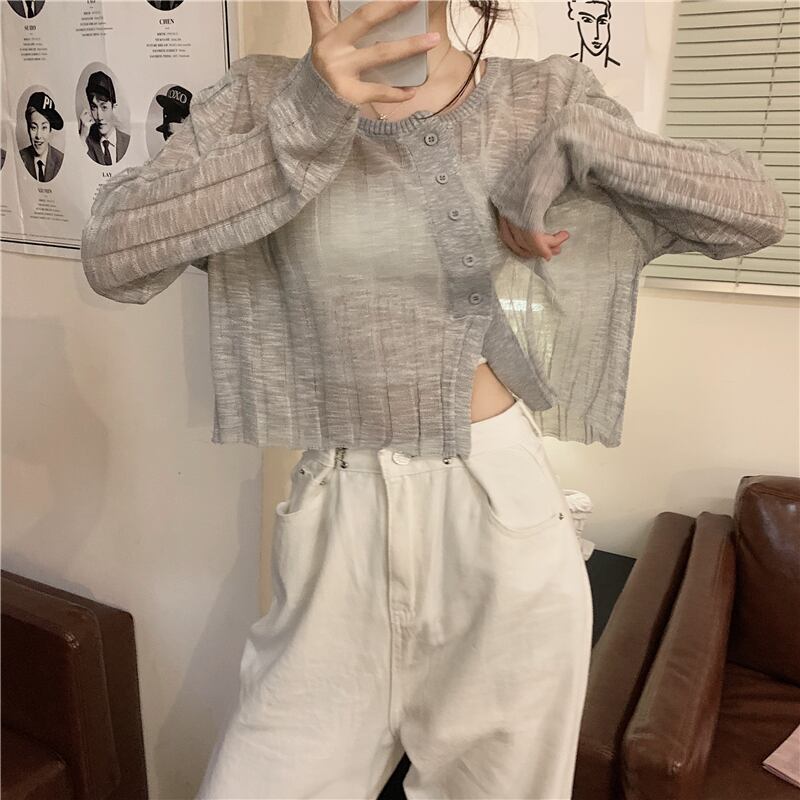 ニットカーディガンジャケット 夏服薄手ショート 夏物 シルク Marchs43612110676