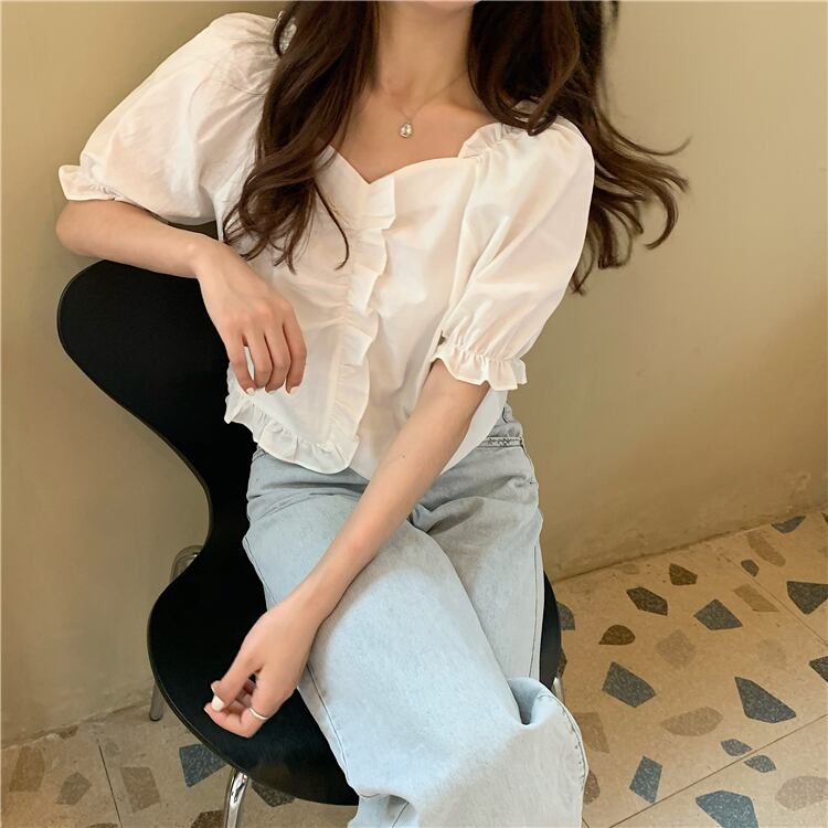 レディース夏服ホワイト薄手 ブラウス 大人ガーリー スウィート キュート カジュアル 夏物 スクウェア Marchs64101902912