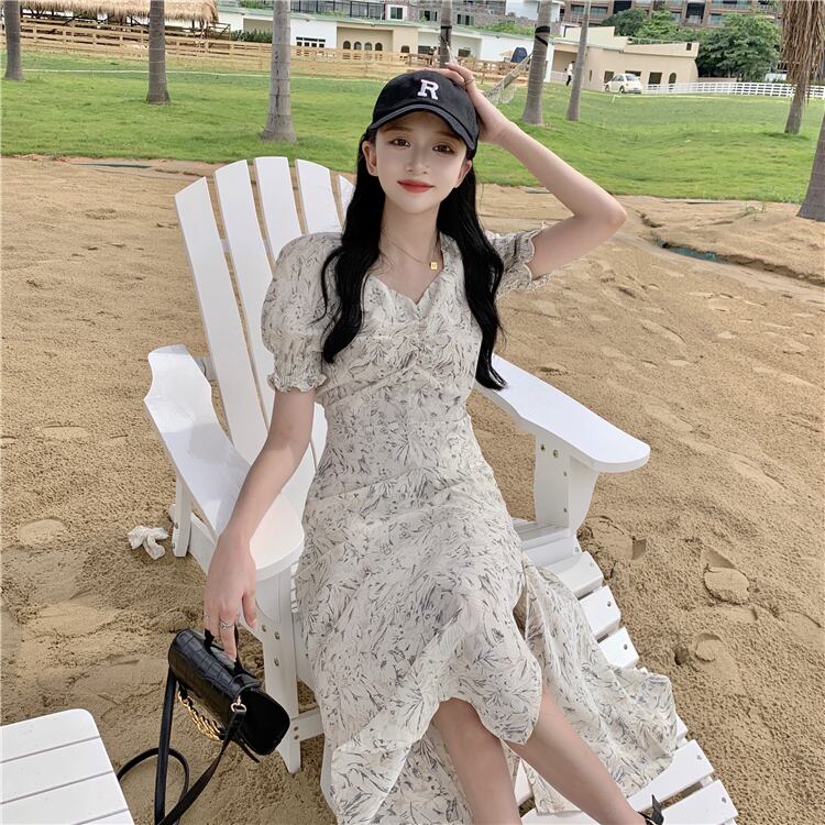 フローラルワンピース夏服ウェストスタンダードスカート レトロ 夏物 花柄 ウエスト ミドル丈 Marchs31480685152