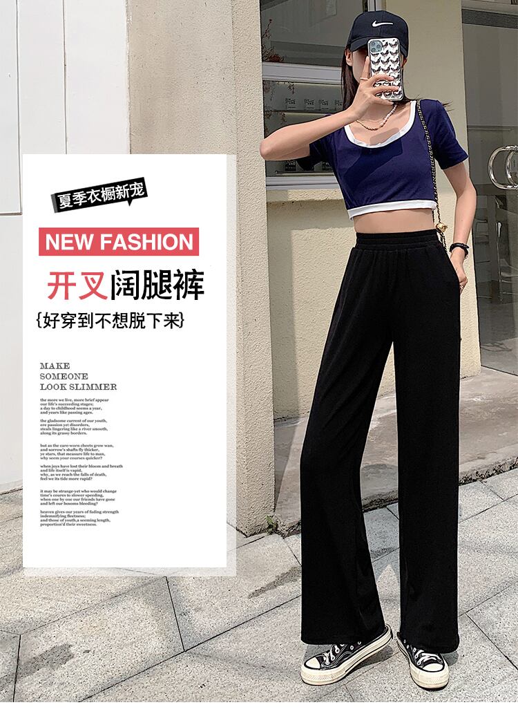 ブラックハイウェストパンツ 夏服薄手 夏物 シルク ウエスト Marchs77843080938