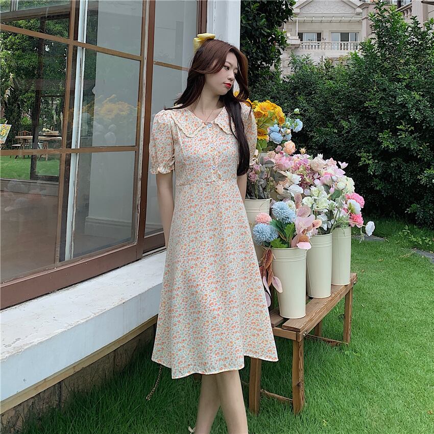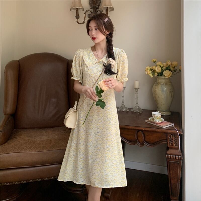 ワンピーススタンダードスカート レディーススリーブカラー夏服 レトロ 大人ガーリー スウィート キュート カジュアル 夏物 Marchs92132715886
