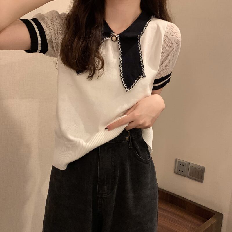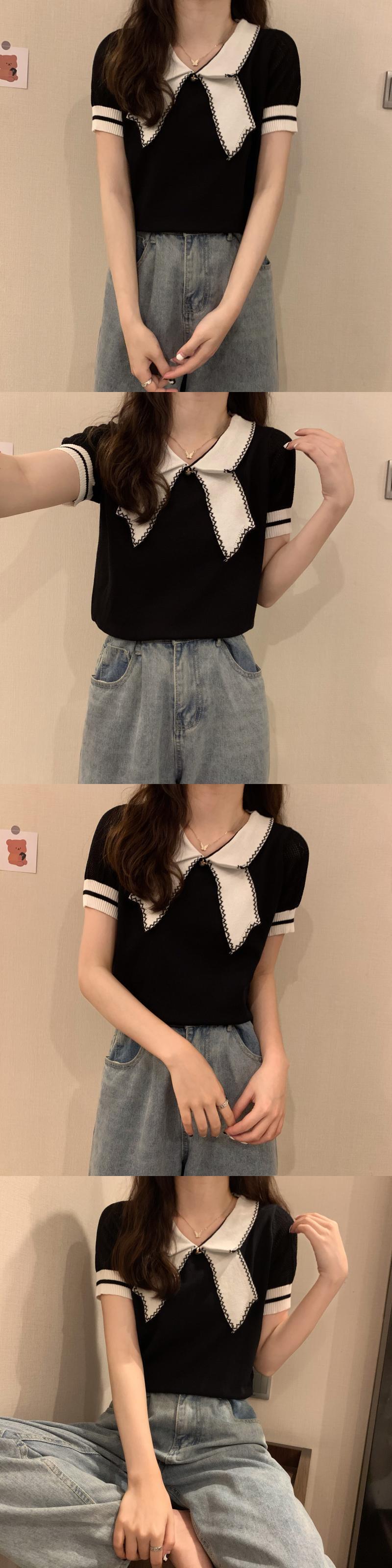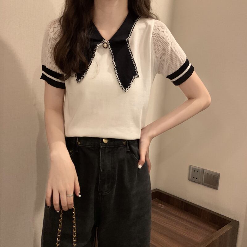 リボンショートブラウス レディース夏服セーター 薄手Tシャツ 夏物 シルク Marchs39995987532