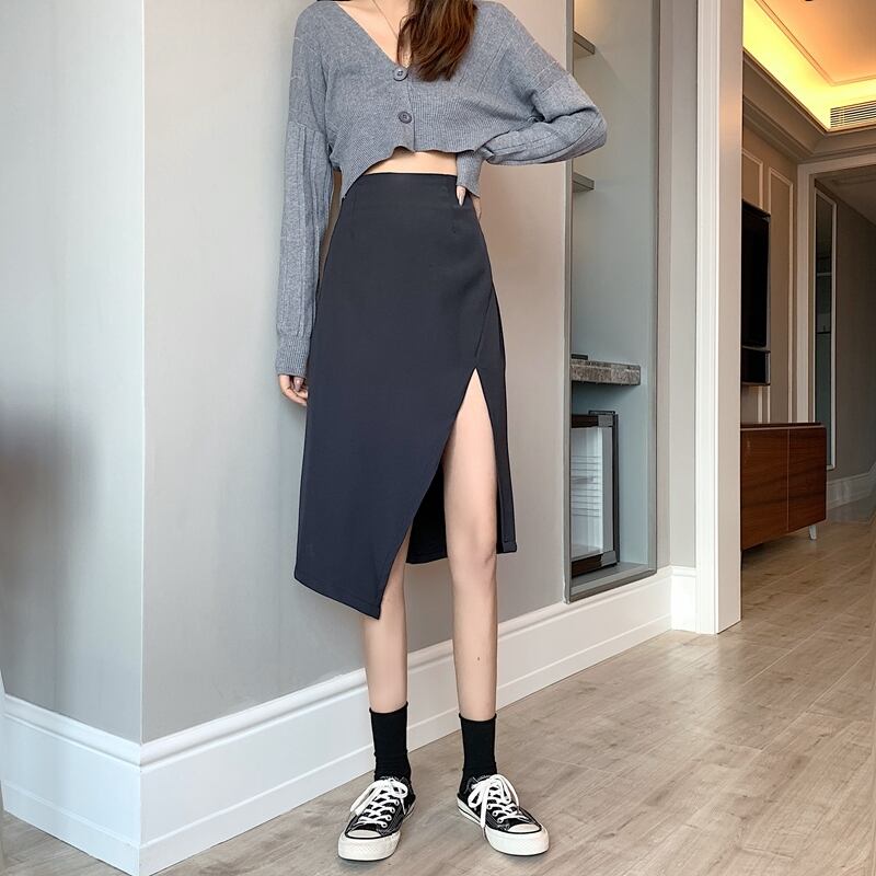 夏服ブラックスリムスカート レディーススリットハイウェストウェスト秋物 夏物 オータム ウエスト ミドル丈 Marchs18006009976