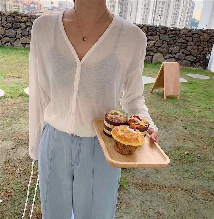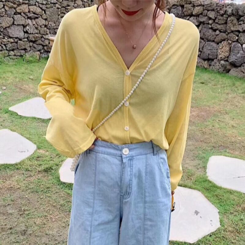 トレンド薄手カーディガン夏服Tシャツトップス ロング 夏物 シルク 長袖 Marchs68820811913