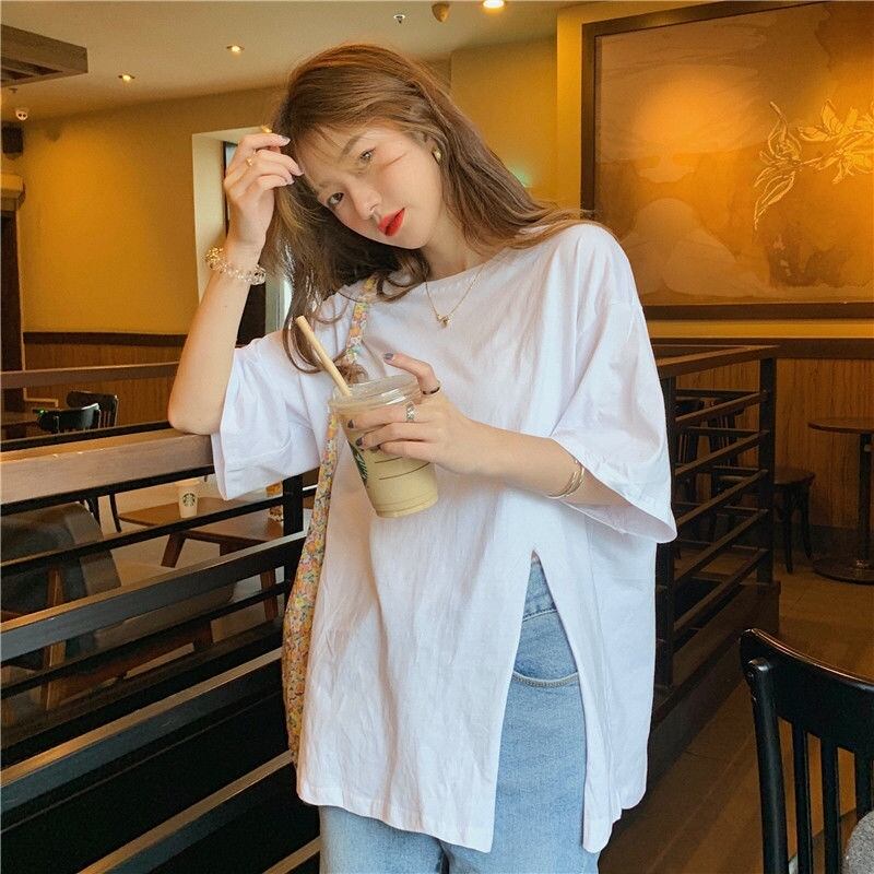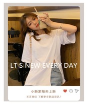 夏服ホワイトTシャツトレンドサイドカジュアルルーズ薄手トップス レディース 夏物 ミドル丈 Marchs71462365891