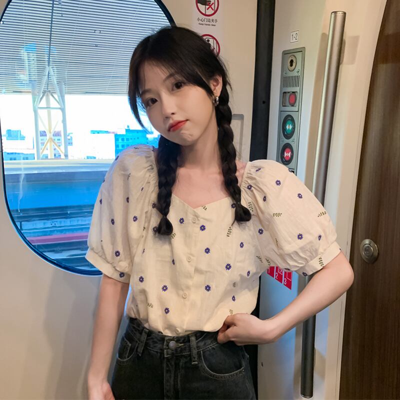 フローラルスリーブシャツ レディース夏服韓国ファッションスタンダードカラーカーディガン レトロ 夏物 花柄 スクウェア Marchs22564429498