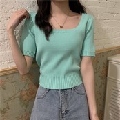 夏服ホワイトショートTシャツスリム薄手セーター スタイルカラートップス 夏物 シルク スクウェア Marchs73202481536