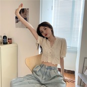ショートVネックレースカーディガン夏服ワンピースレディーススタイルシャツ 夏物 Marchs45466318010