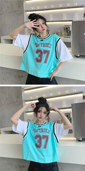 ルーズショートトップス 夏服Tシャツレディース 夏物 ステッチ ボーイズ コーデ marchs6734993979369