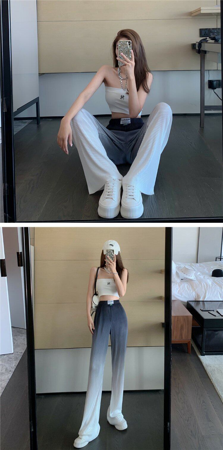 カラーパンツ 夏服ハイウェストウェストプリーツカジュアル薄手 夏物 シルク ウエスト コーデ marchs67221590017