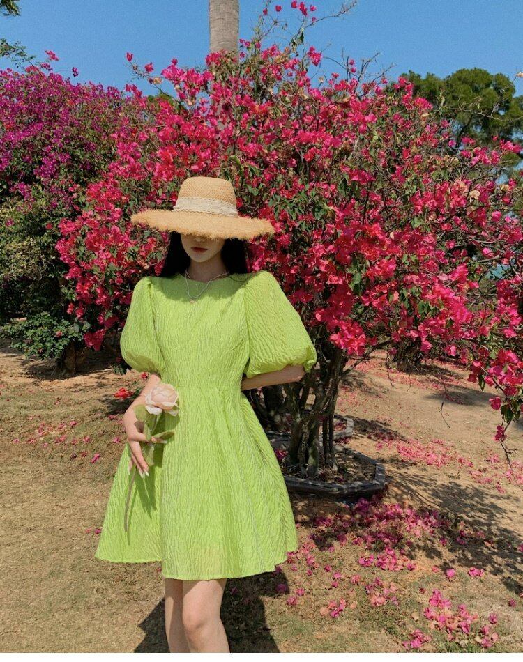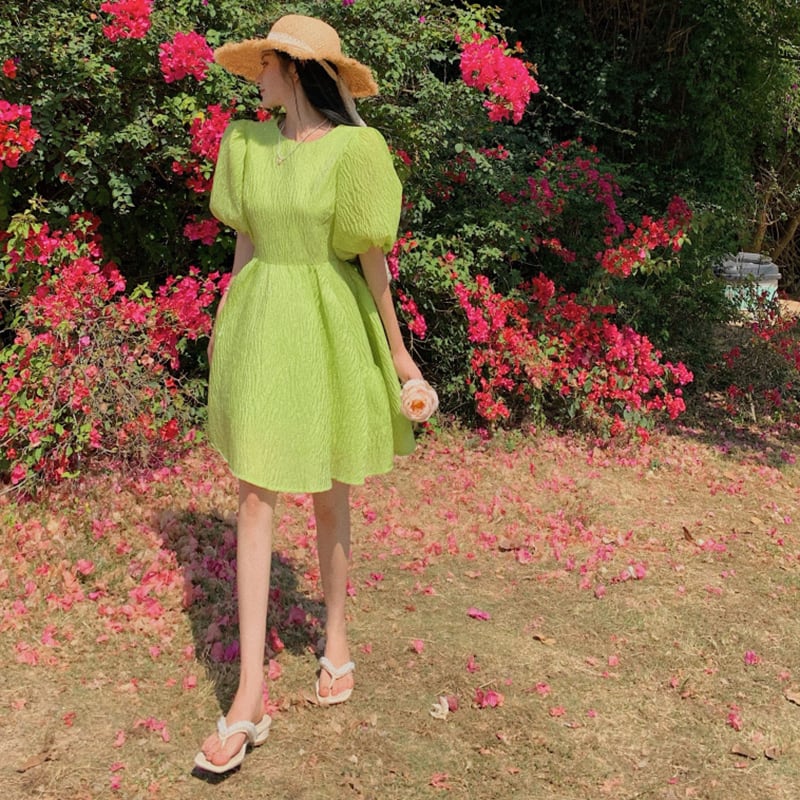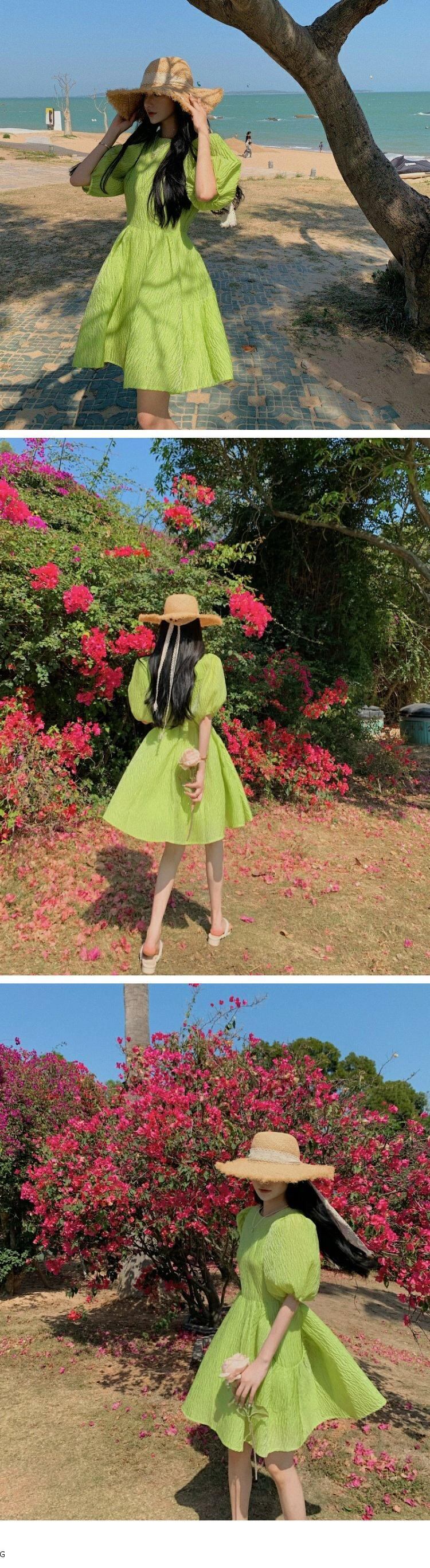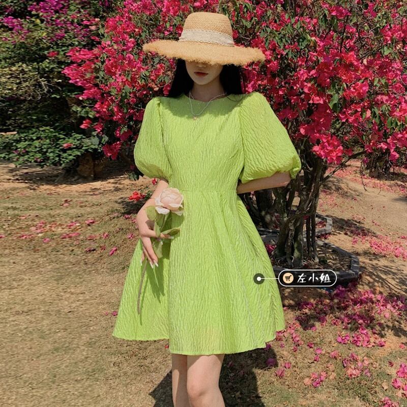 韓国ファッションウェスト薄手スリーブワンピースレディース夏服スカート 夏物 スタイル ウエスト コーデ marchs6782146932380
