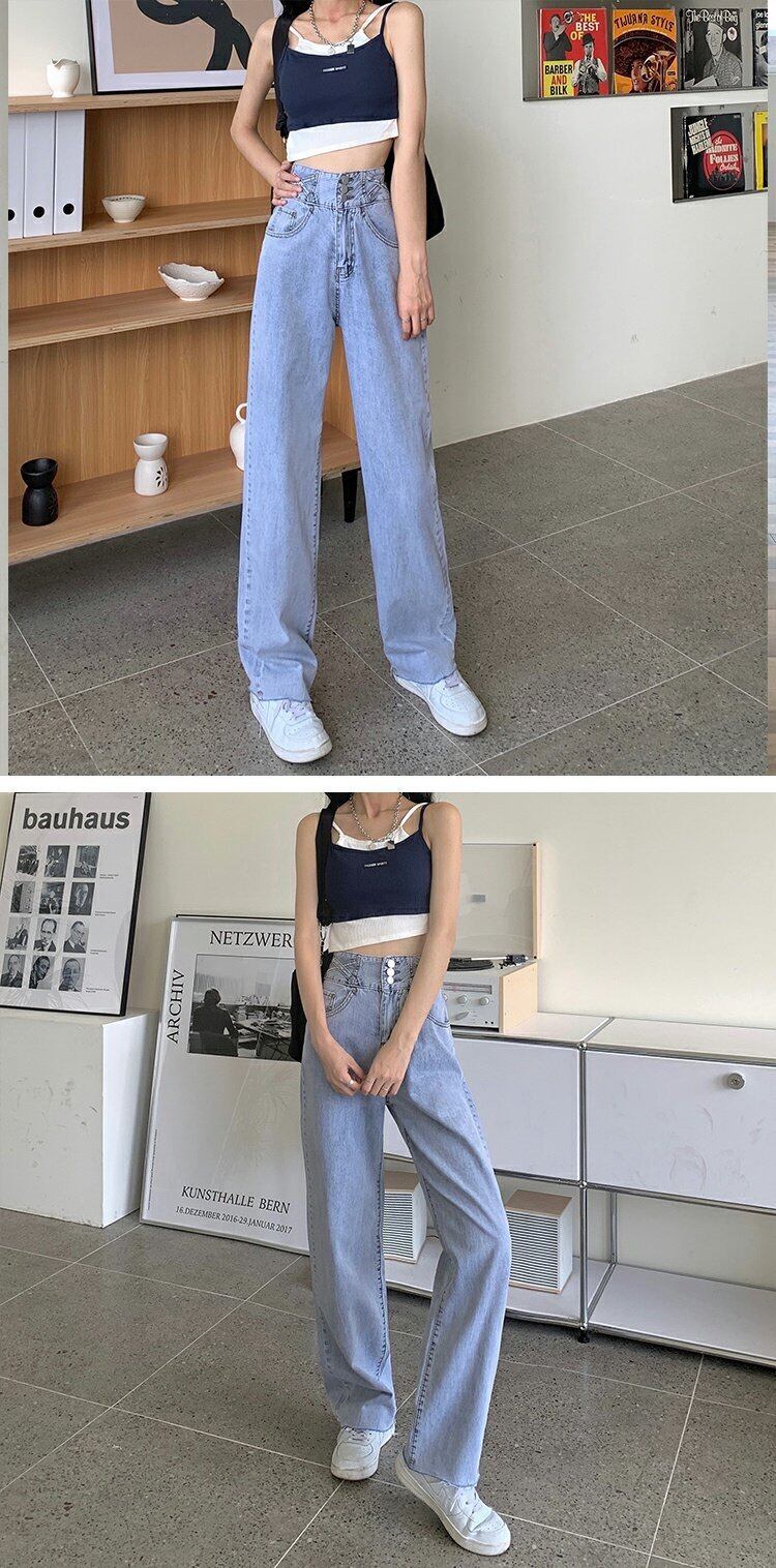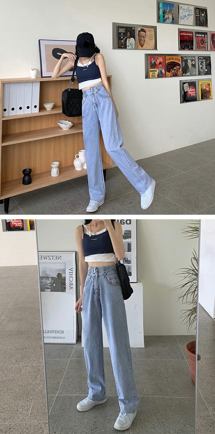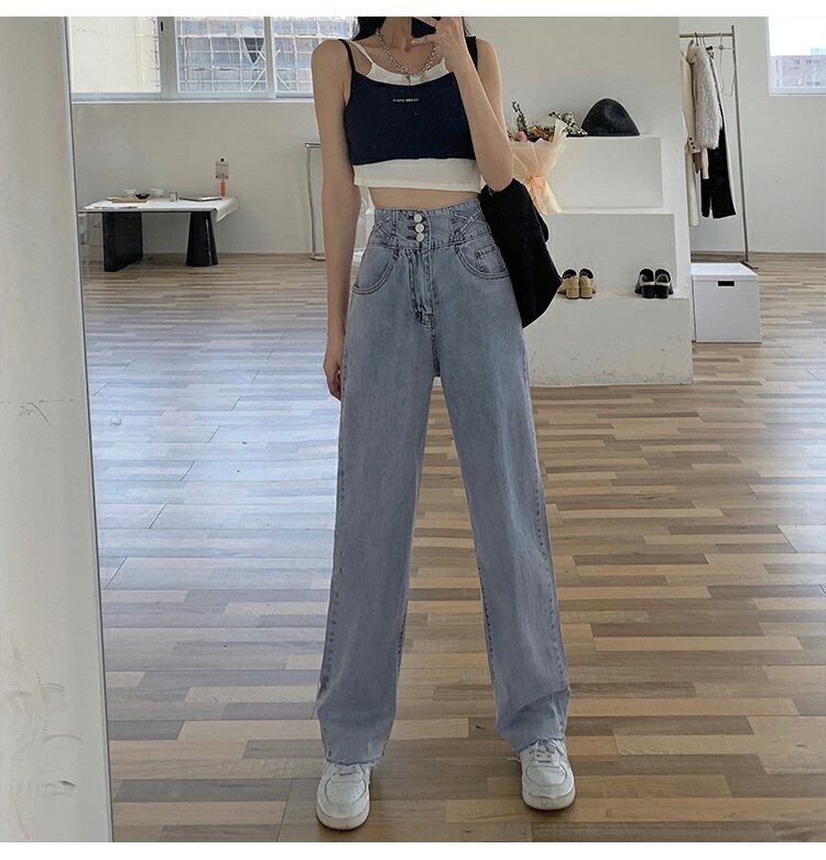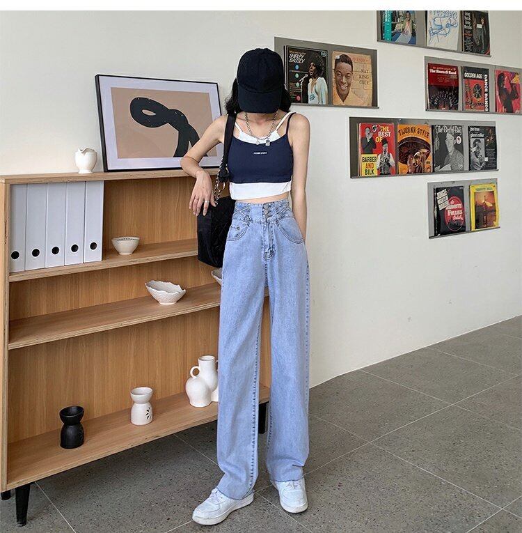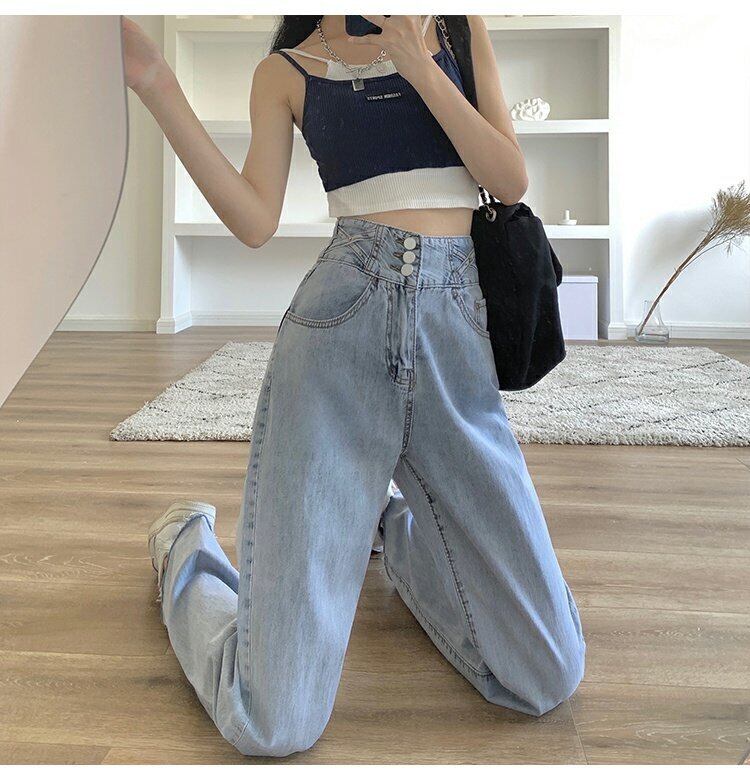 夏服薄手ジーンズ レディースルーズ韓国ファッションパンツ ハイウェスト 夏物 ウエスト コーデ marchs678212780998