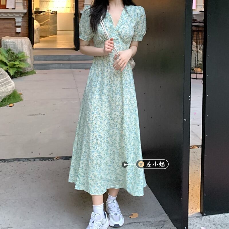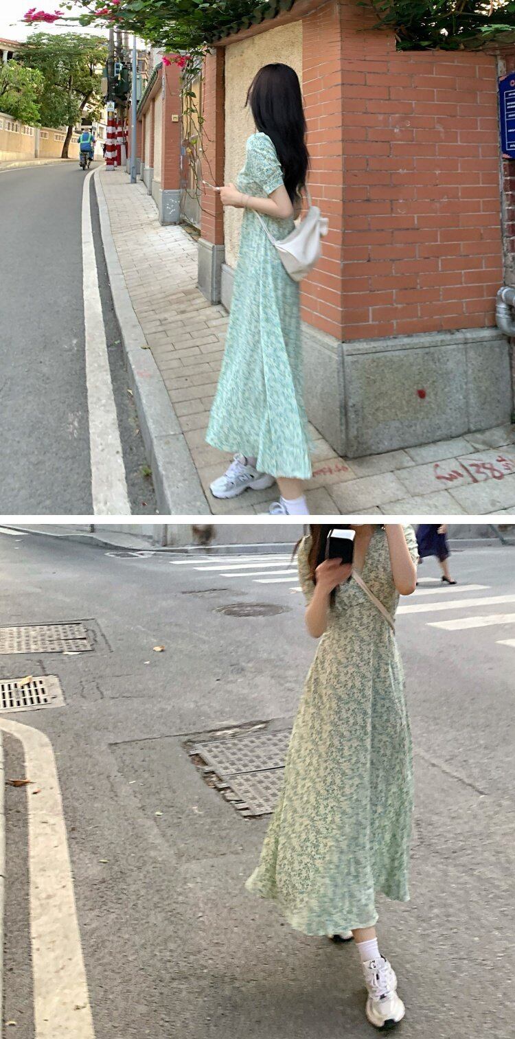 スタンダードフローラルシフォンワンピースレディース夏服ロングスカート レトロ 大人ガーリー スウィート キュート カジュアル 夏物 花柄 フラワーデザイン コーデ marchs6769580287450