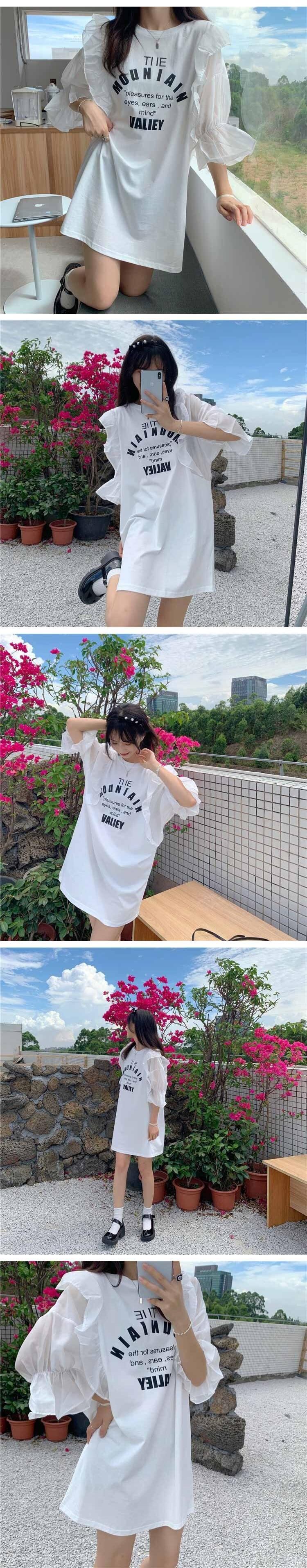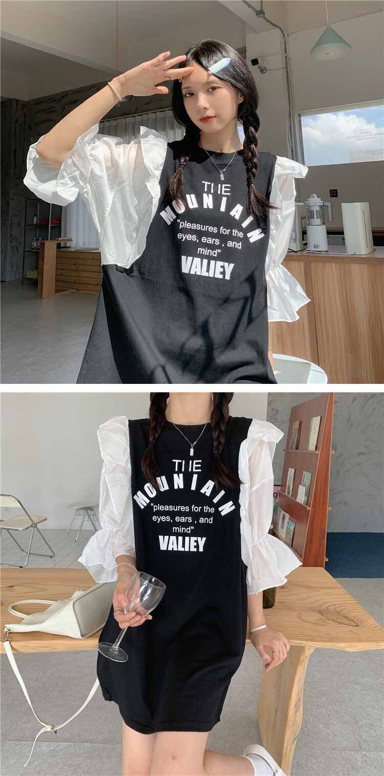 夏服スタイルトレンドメッシュスリーブTシャツスカート ルーズカジュアルワンピースレディース 夏物 ステッチ コーデ marchs6718517988328