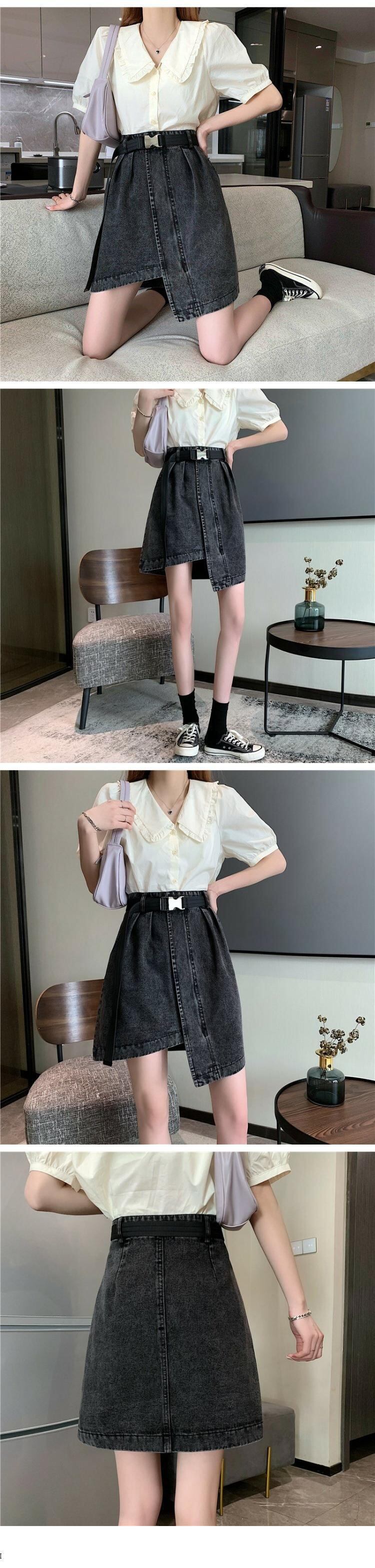 色:デニムブルー+ベルト,ブラックグレー+ベルト