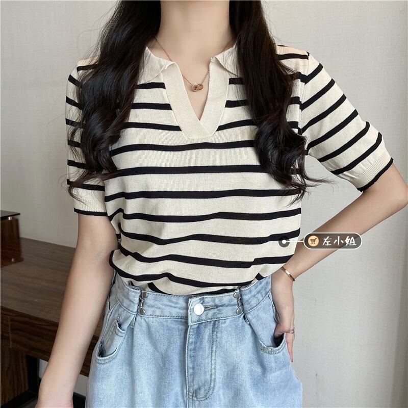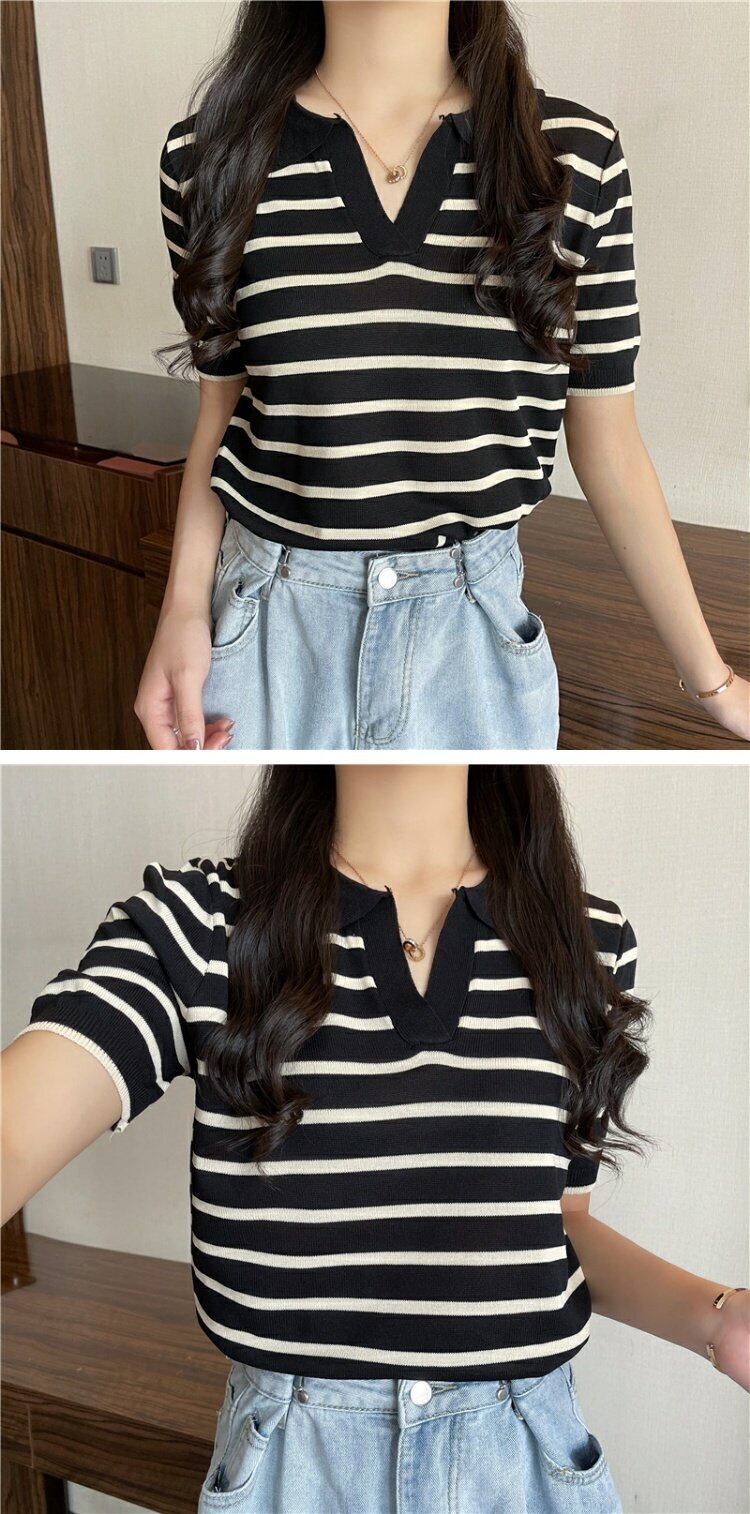 ストライプシャツ 夏服ルーズセーター トップス 夏物 コーデ marchs679090900573