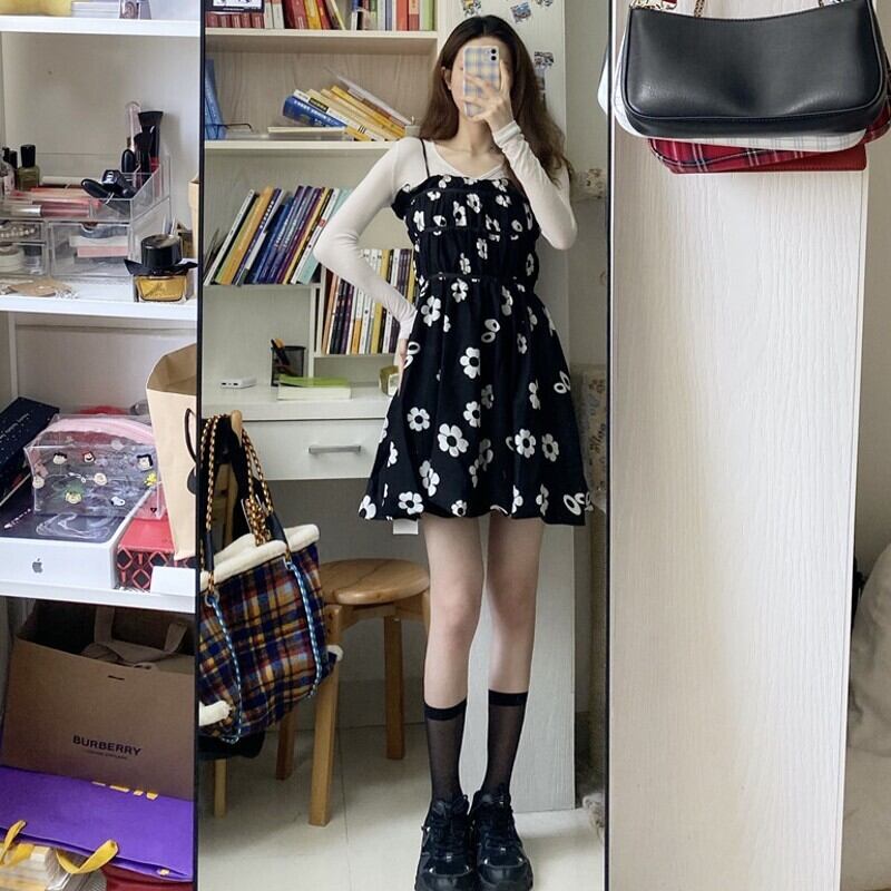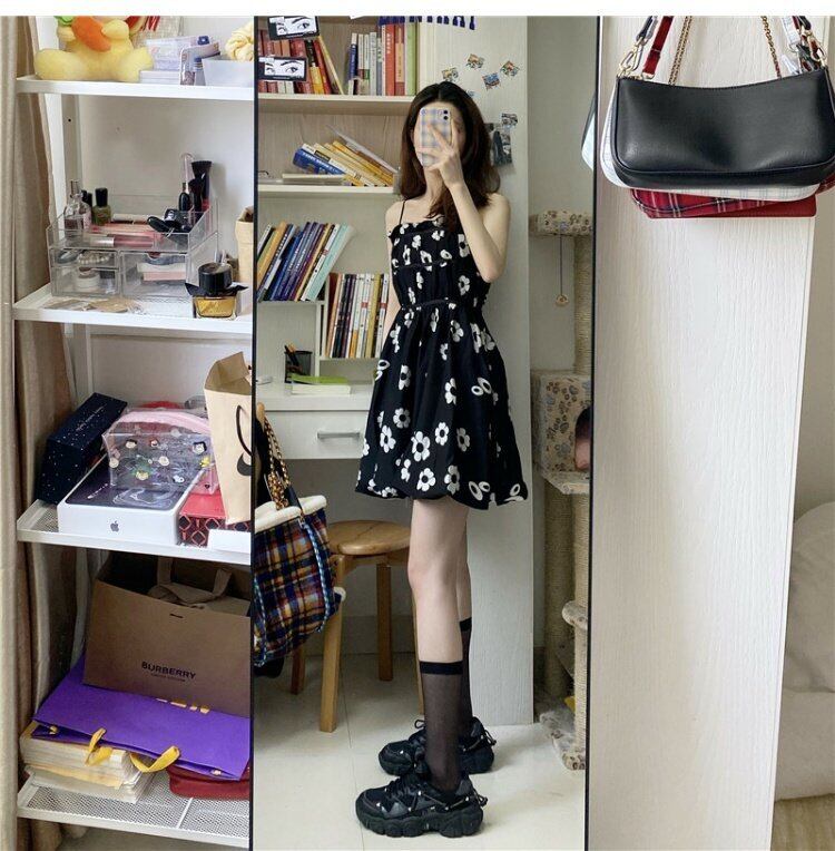 夏服Flowerデザイン スカート Vネックハイウェストウェストブラックフローラルワンピースレディース 夏物 花柄 パニエ ペチコート フラワーデザイン ウエスト コーデ marchs6799231461886