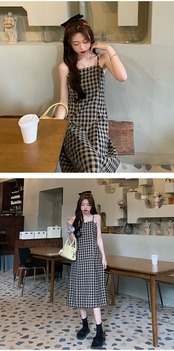 スタンダード格子柄ワンピースレディース夏服スカート レトロ 夏物 ミドル丈 コーデ marchs6777820481591