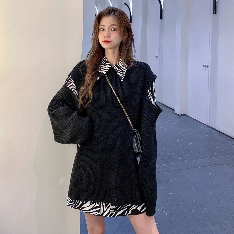 スタイルレディーススタンダードスプリング秋物セーター パターンシャツ レトロ 春物 オータム コーデ marchs6753635179420