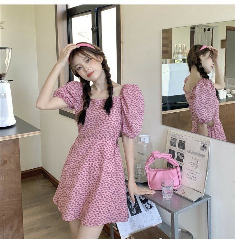 夏服フローラルスリーブカラー半袖ワンピースレディース ショート ピンク ハーフスリーブ 大人ガーリー スウィート キュート カジュアル 夏物 花柄 スクウェア コーデ marchs6733315573000