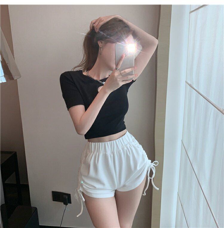 ブラックパンツ 夏服薄手ギャザーショーツ ハイウェストウェストルーズカジュアル 夏物 ウエスト コーデ marchs6719955566930