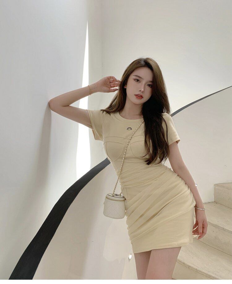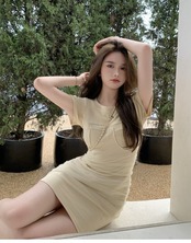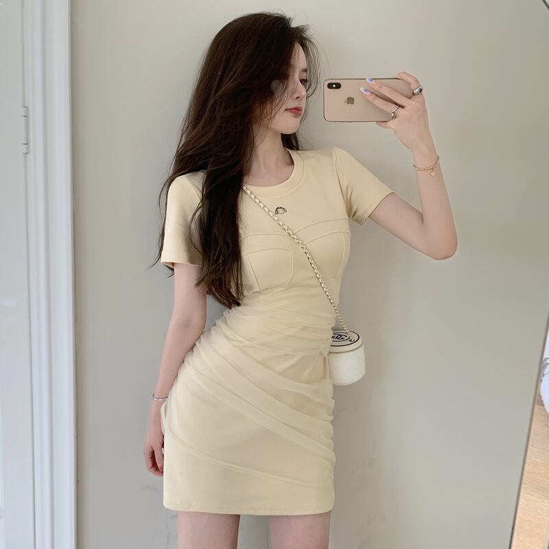 スカート レディース夏服ウェストメッシュイエローAラインワンピース 夏物 ステッチ ウエスト コーデ marchs6722253185043