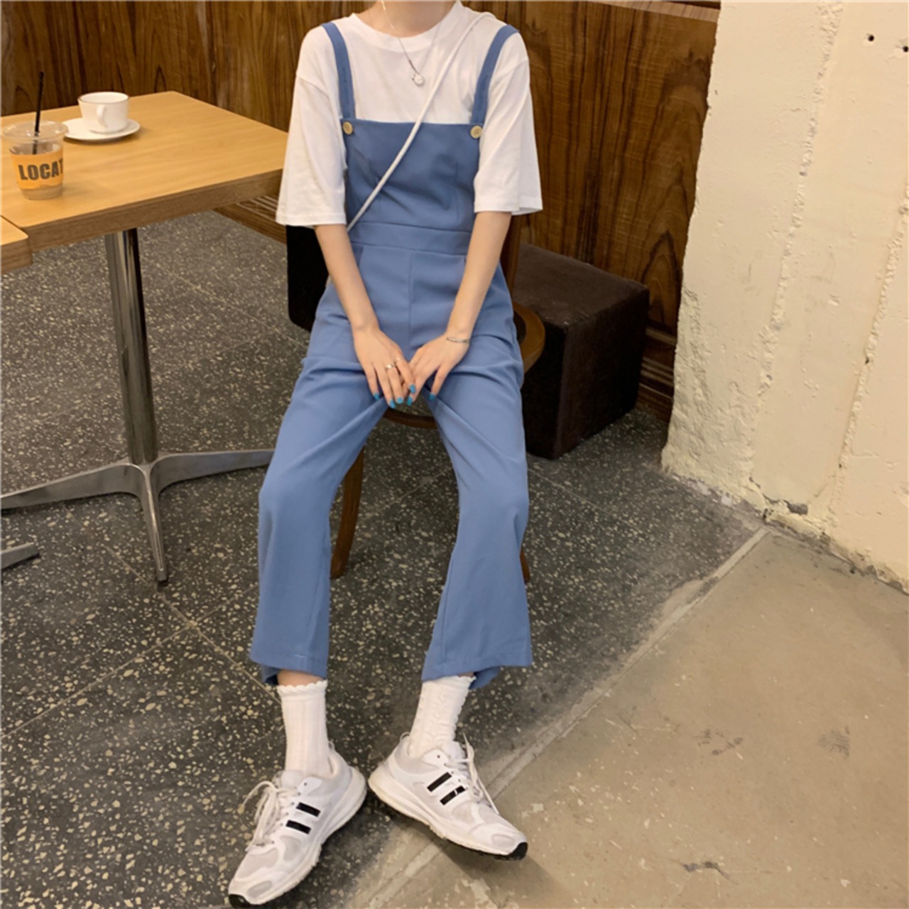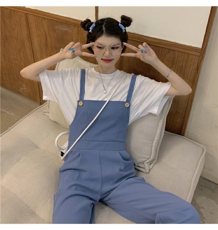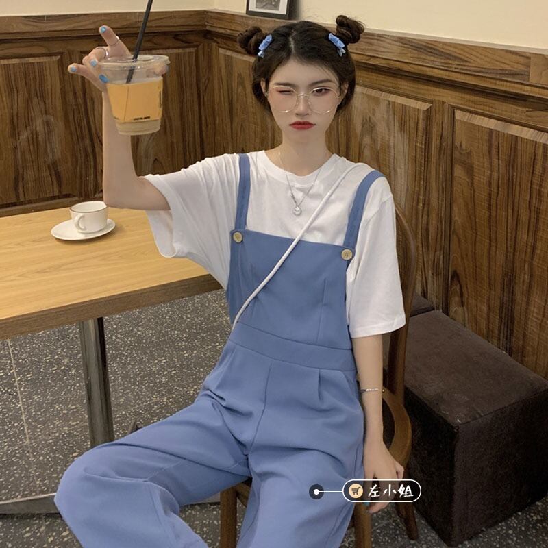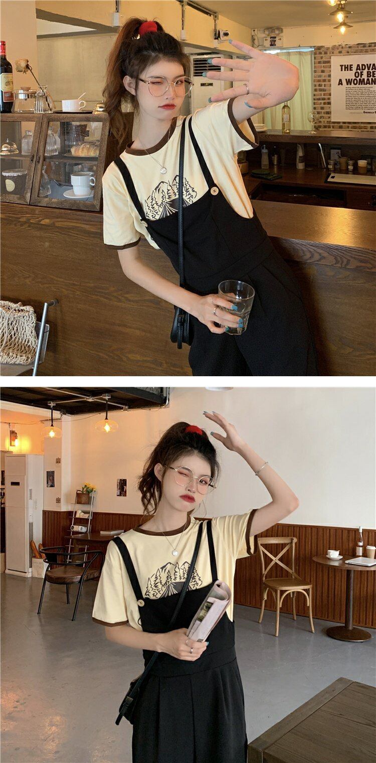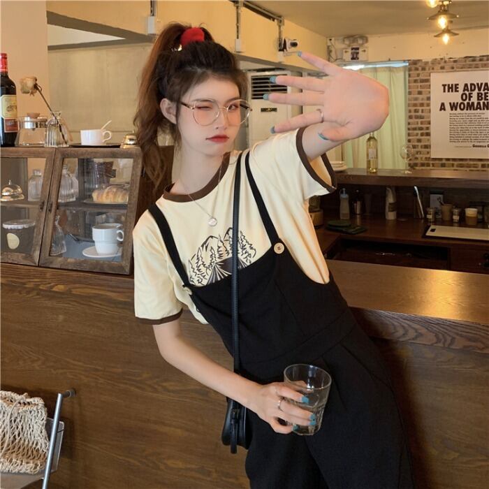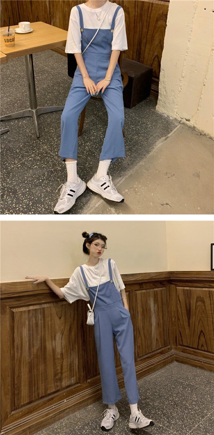 色:黒いオーバーオール,ヘイズブルーのオーバーオール,ベージュTシャツ