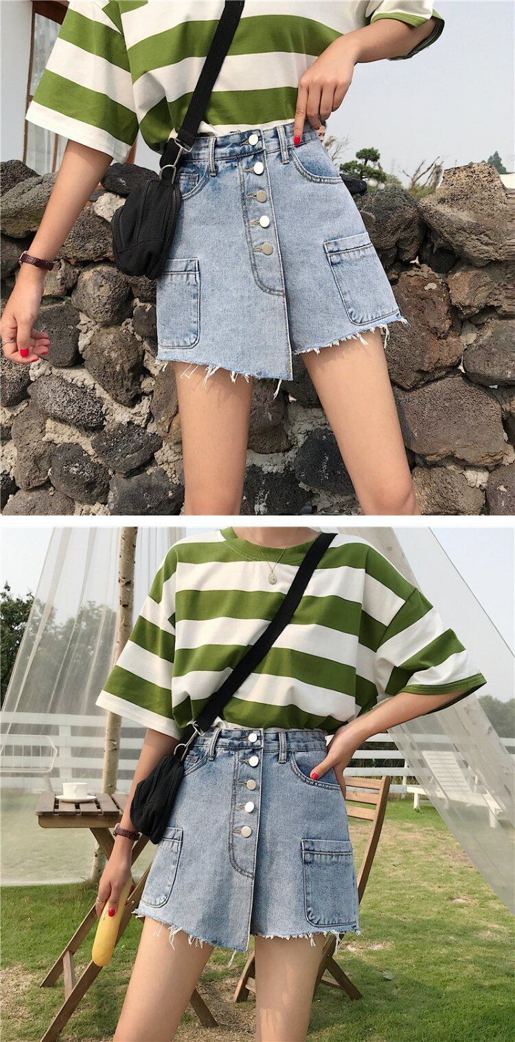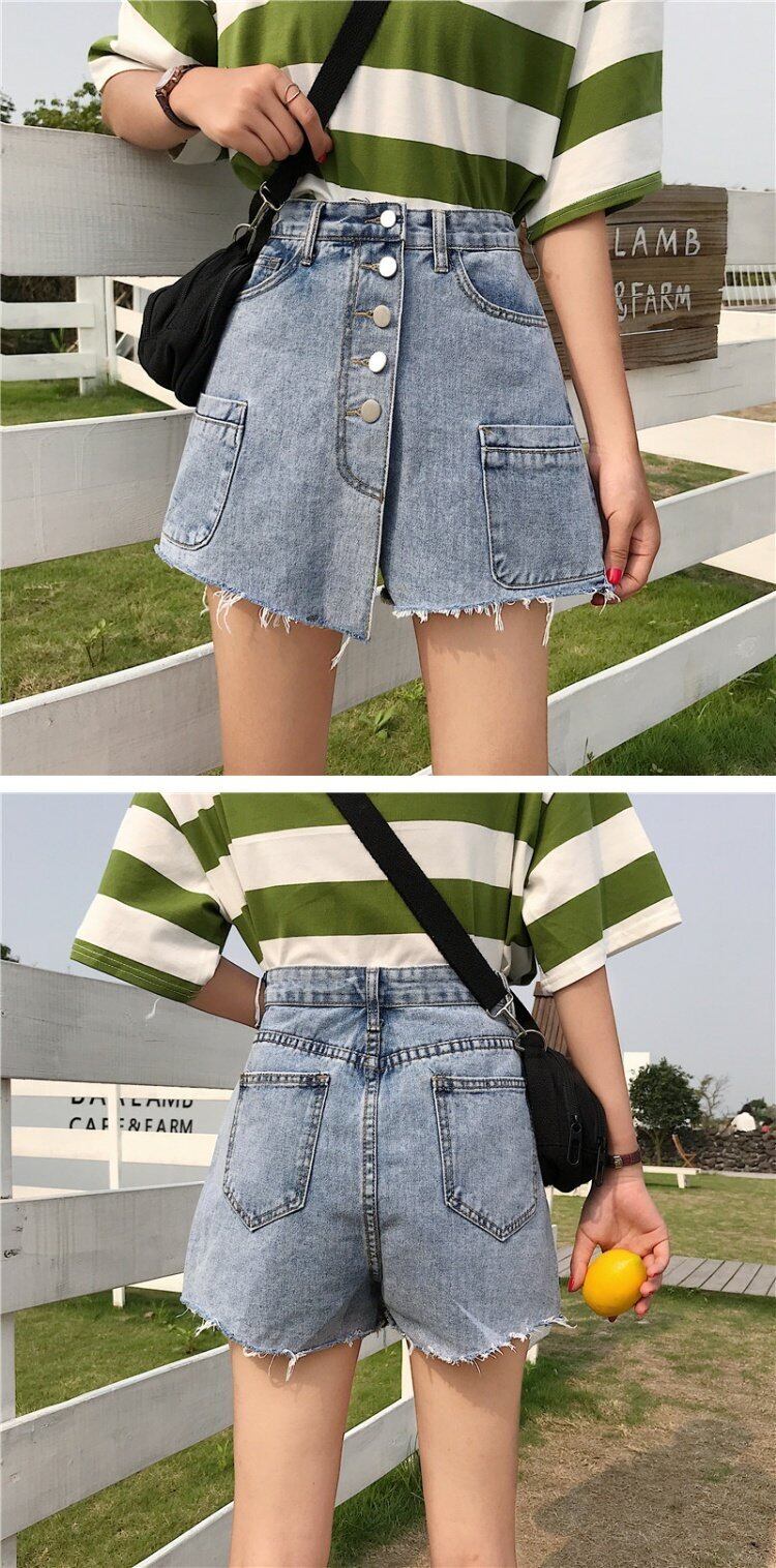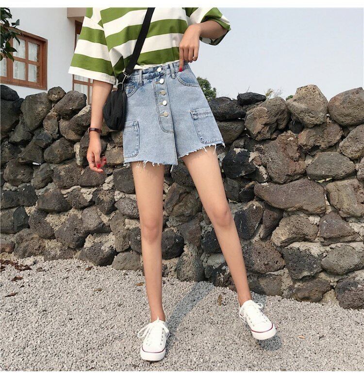 夏服韓国ファッションハイウェスト薄手Aラインショーツ ジーンズ 夏物 スタイル ウエスト コーデ marchs6740146423956