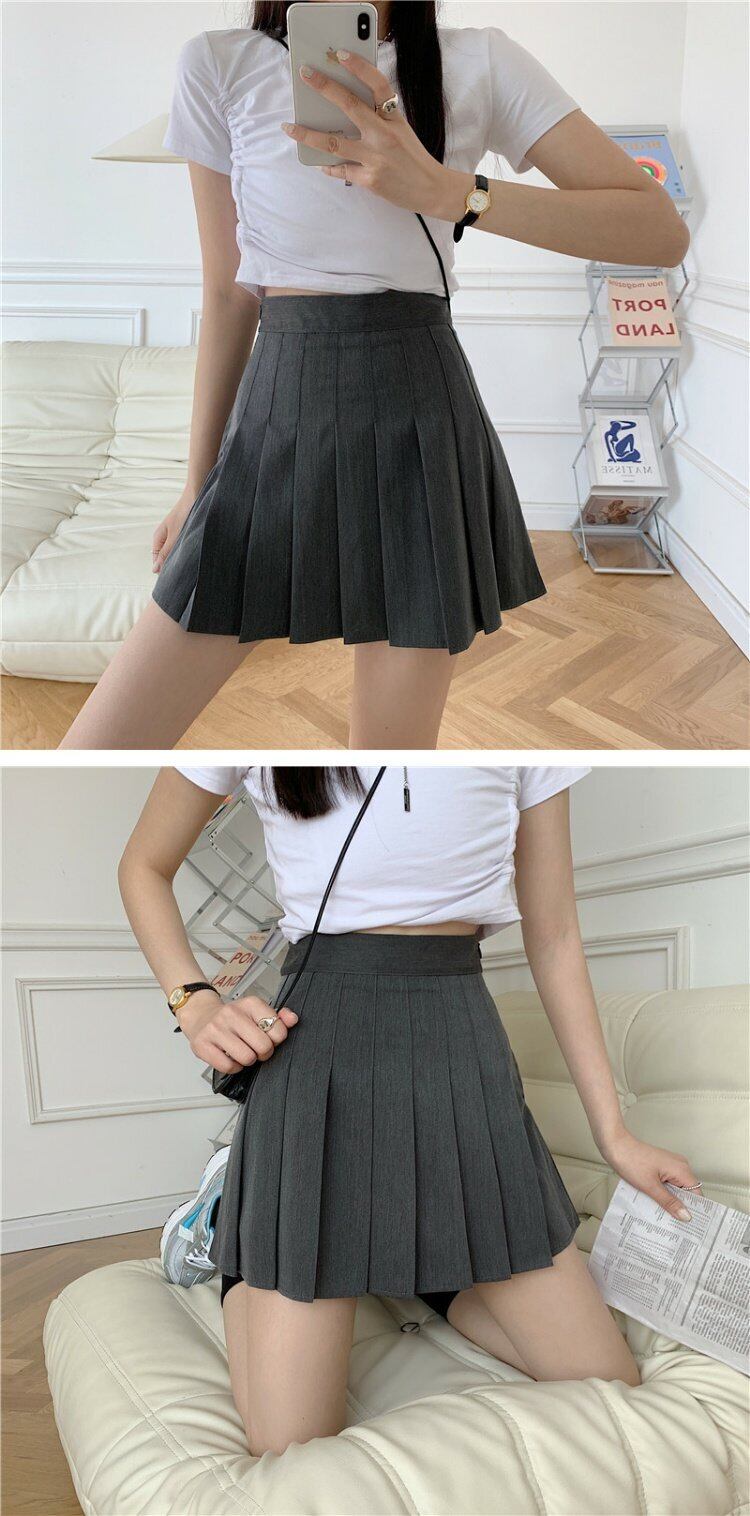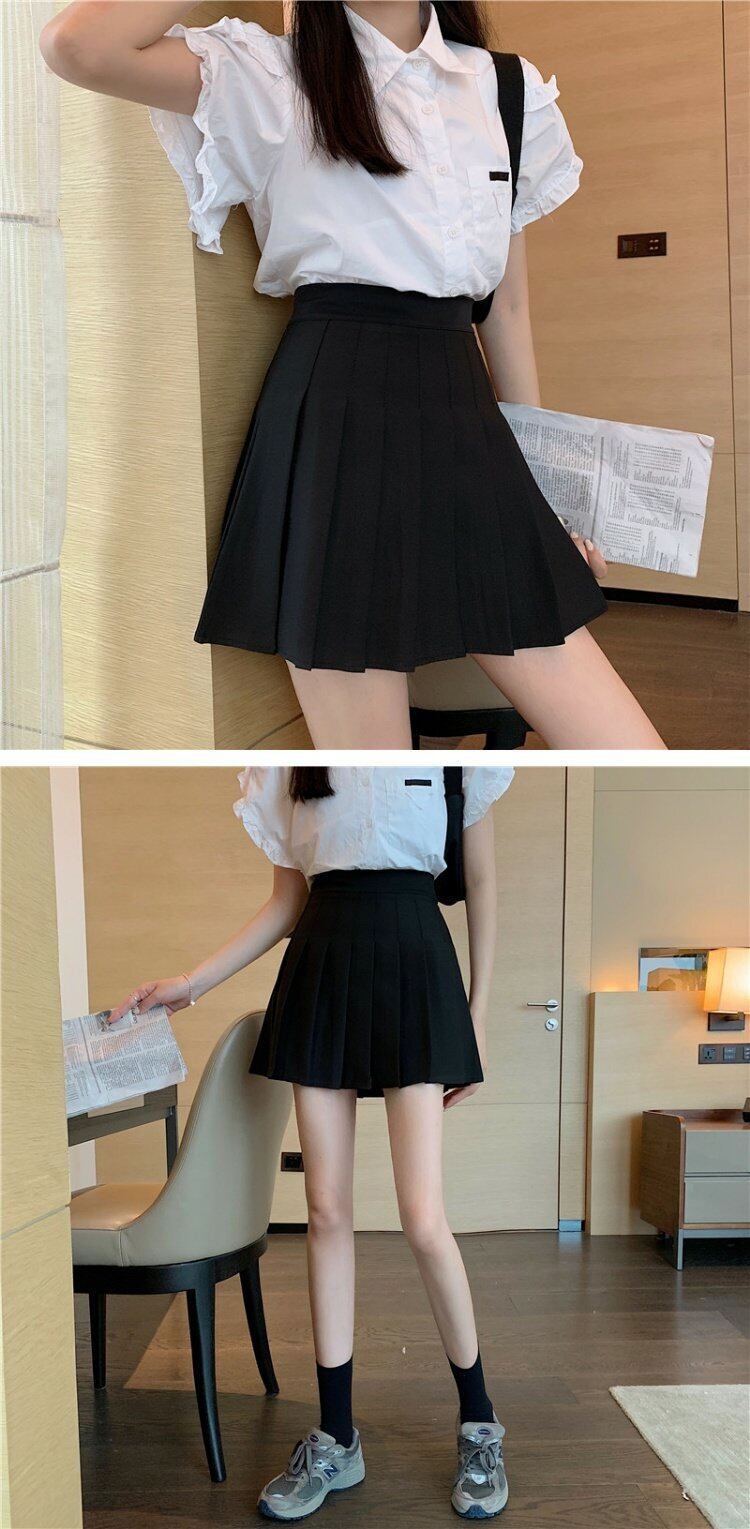 夏服ソリッド カラー薄手スカート スタイルプリーツハイウェストウェストブラックAラインレディース 夏物 ソリッドカラー ウエスト コーデ marchs6770686030973