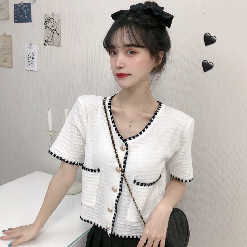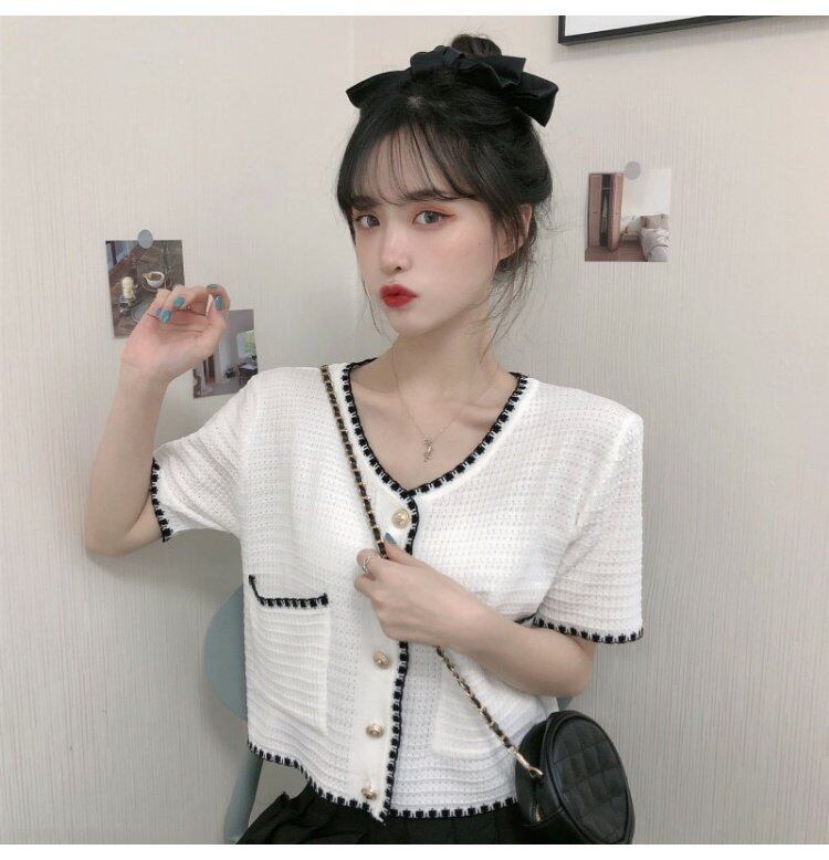 ホワイトブラウス ハイウェストウェストショートジャケット ニットカーディガン夏服薄手 夏物 シルク ウエスト コーデ marchs6795155501817
