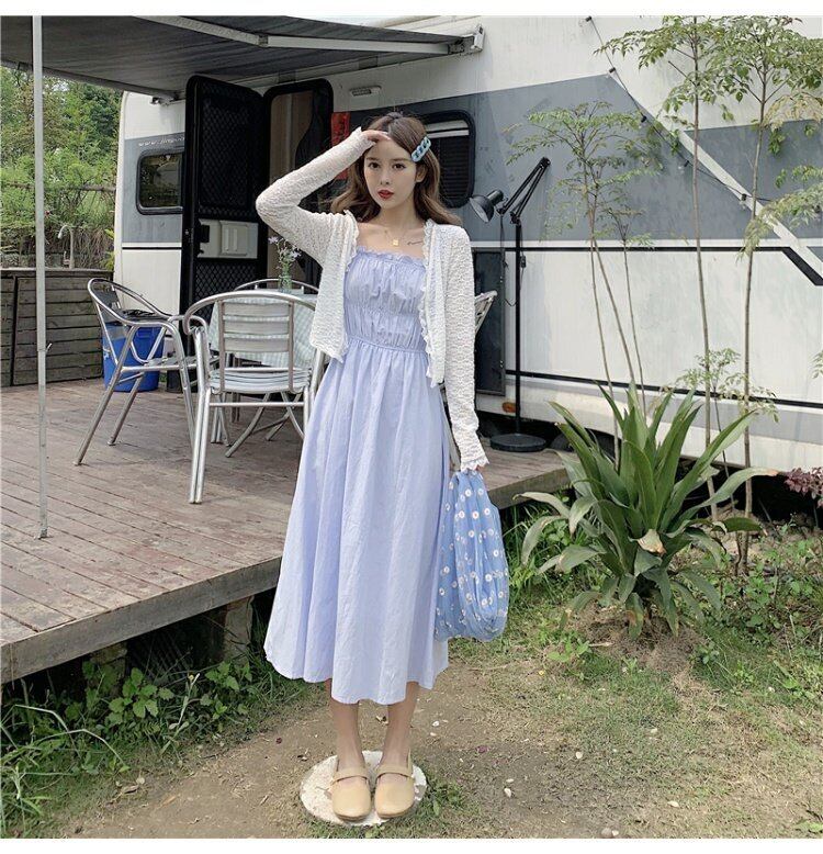 色:ホワイトサスペンダースカート,青いサスペンダードレスワンピース,白い日焼け止め服,ビーングリーン日焼け止め衣類単品