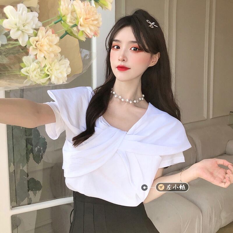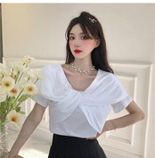 ショートトップス 夏服カラー薄手スリムホワイトTシャツレディース リボン 大人ガーリー スウィート キュート カジュアル 夏物 スクウェア コーデ marchs6721490337193