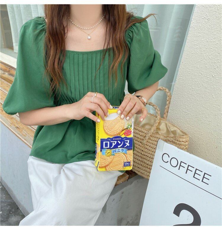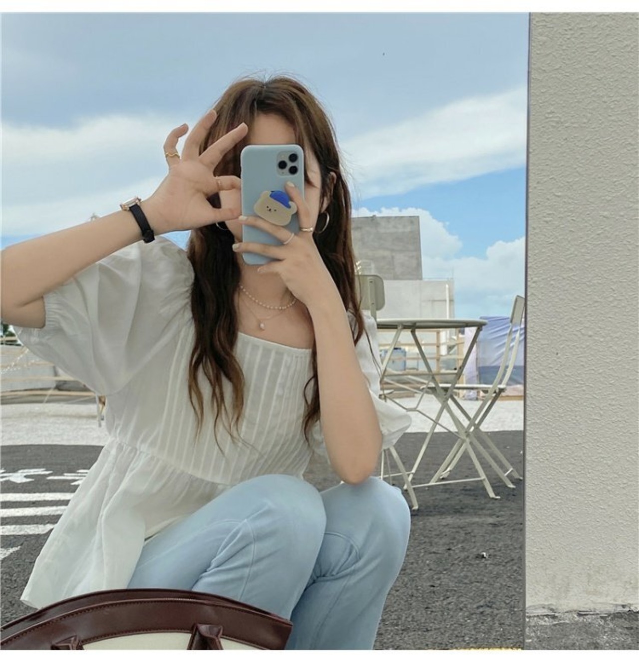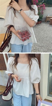 夏服韓国ファッションルーズカラープリーツスリーブシャツ トップス 夏物 スクウェア スタイル コーデ marchs6762819032374