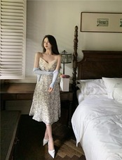 Vネックワンピース夏服ロングスカート 大人ガーリー スウィート キュート カジュアル 夏物 ステッチ コーデ marchs6761921516238