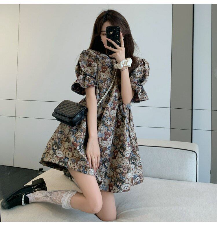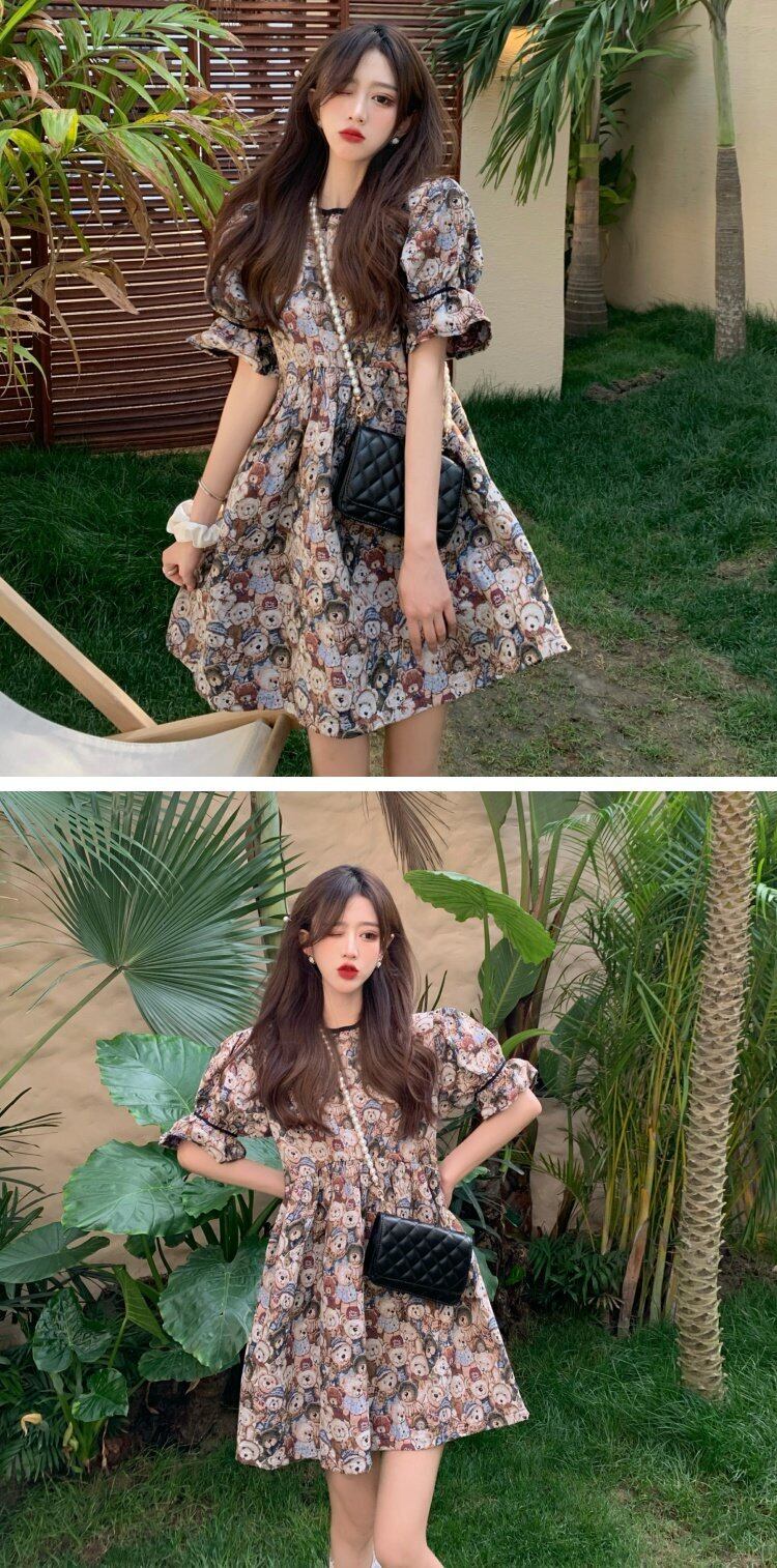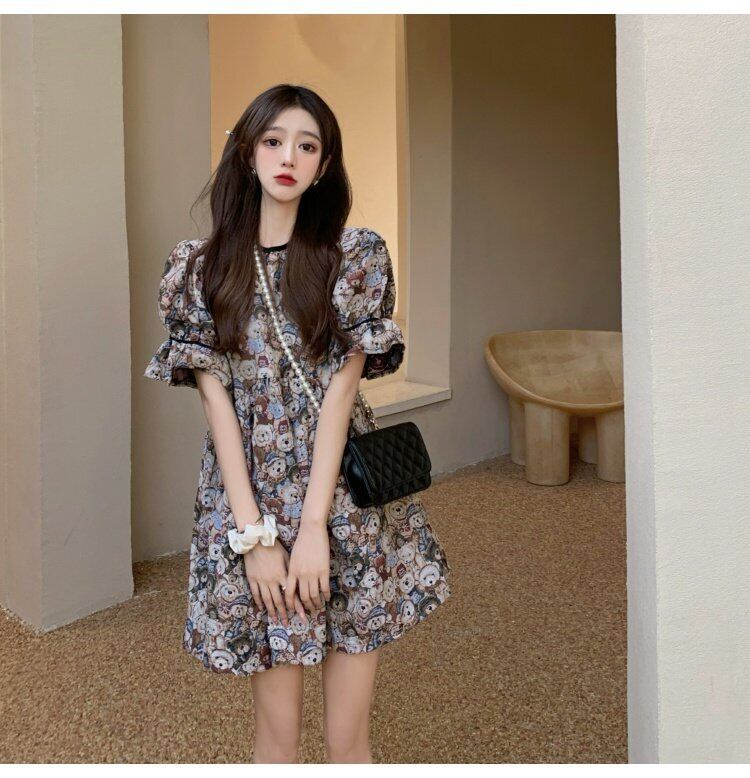 夏服スリーブラウンドネックスタンダードルーズスカート ジャカードワンピースレディース レトロ 大人ガーリー スウィート キュート カジュアル 夏物 Oネック コーデ marchs6776560455741