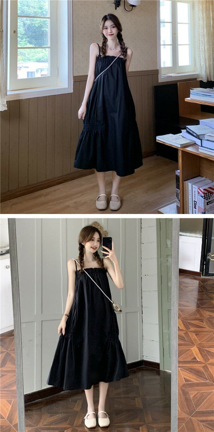 夏服ブラックスタンダードスリーブルーズワンピースレディース レトロ 夏物 コーデ marchs6792852720161