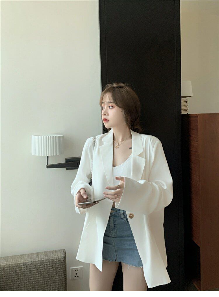 レディーススプリングシャツ ホワイトカジュアルジャケット 春物 コーデ marchs6718871804182