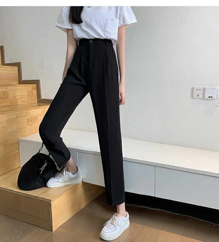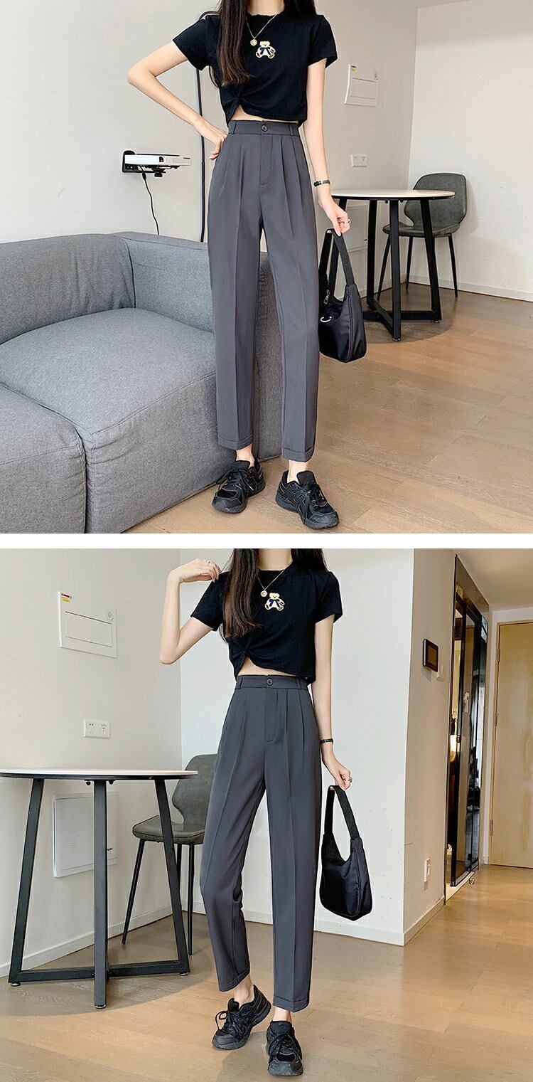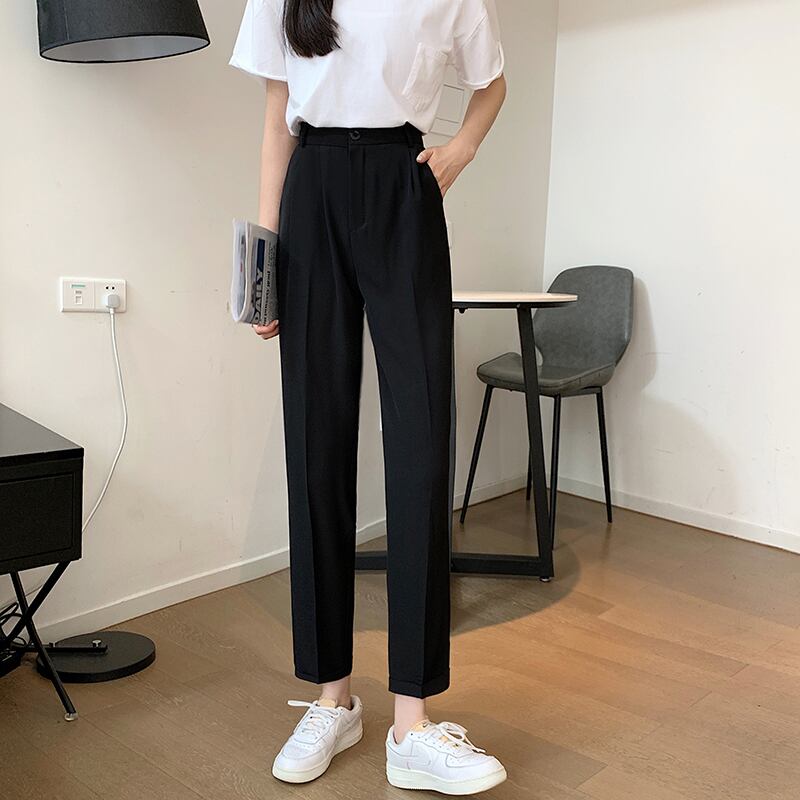 ブラックパンツ 夏服スリムカジュアルルーズ薄手ハイウェスト 夏物 ウエスト コーデ marchs6766525699312